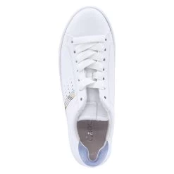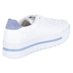 Gabor Damen Low Sneaker WeiĂź Glattleder – sportliches Design – seitliche Lochung – typische Markendetails – stylische Ziernähte – SchnĂĽrung – verstärkter Fersenbereich – gepolsterter Einstieg – gepolsterte Decksohle – robuste, rutschhemmende Profilsohle – ca. 4 cm Plateau