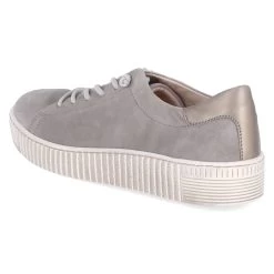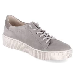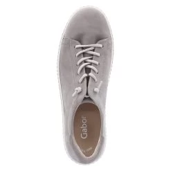Gabor Damen sportliche Halbschuhe/ Low Sneaker Grau Rauleder – SchnĂĽrsenkel – verstärkter Fersenbereich – herausnehmbares, gepolstertes LederfuĂźbett – flexible, rutschhemmende Cupsohle im Used Look