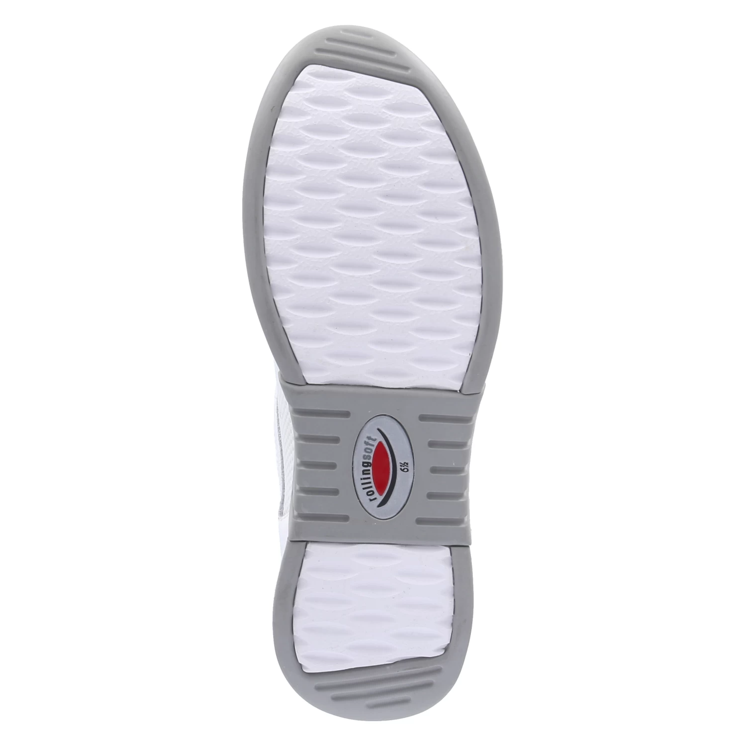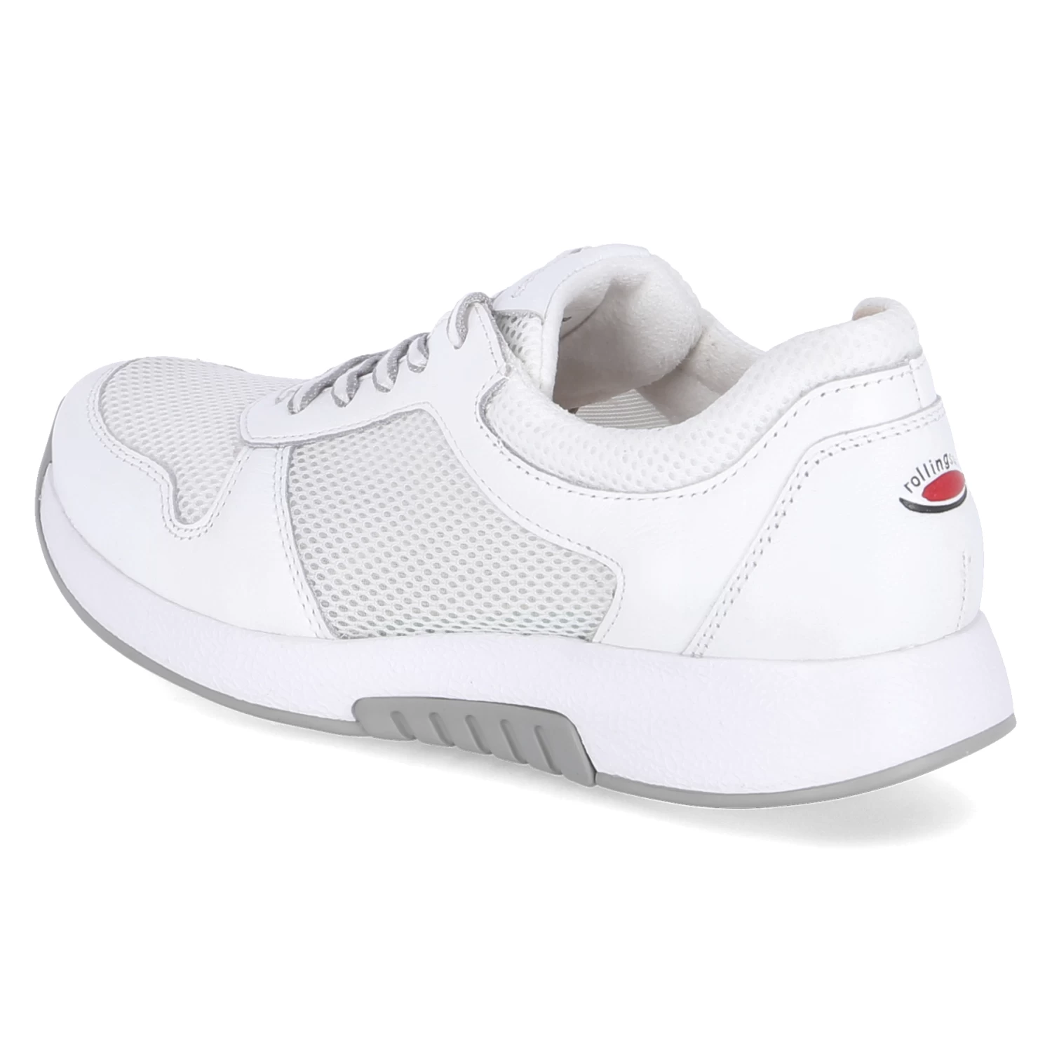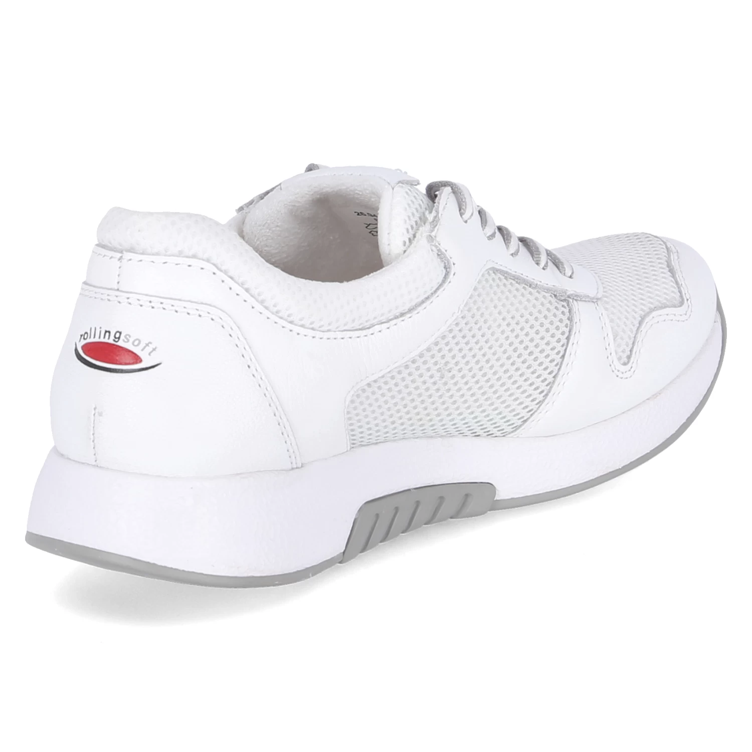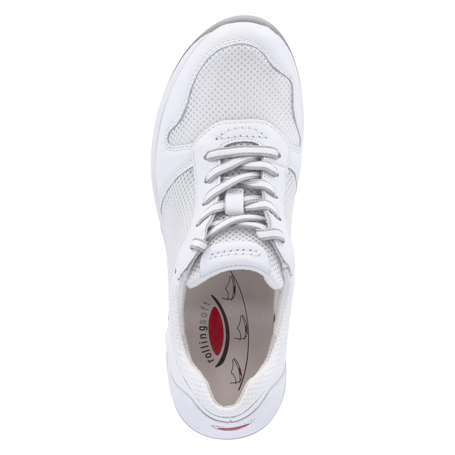 Gabor Rollingsoft Damen Low Sneaker WeiĂź Leder/Textil – sportliche Ziernähte und Zierstreifen – Mesh – dezente Markendetails – SchnĂĽrung – verstärkter Zehen- und Fersenbereich – gepolsterter Einstieg – gepolsterte Wechseldecksohle – flexible, rutschhemmende Profilsohle