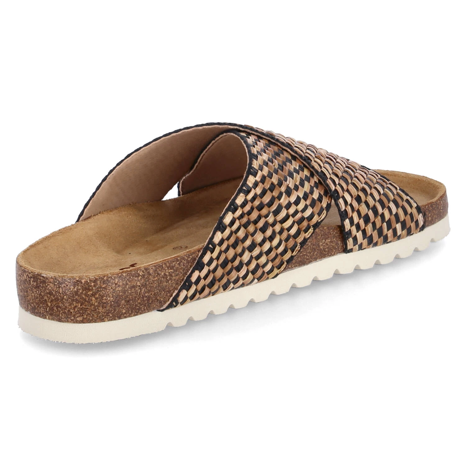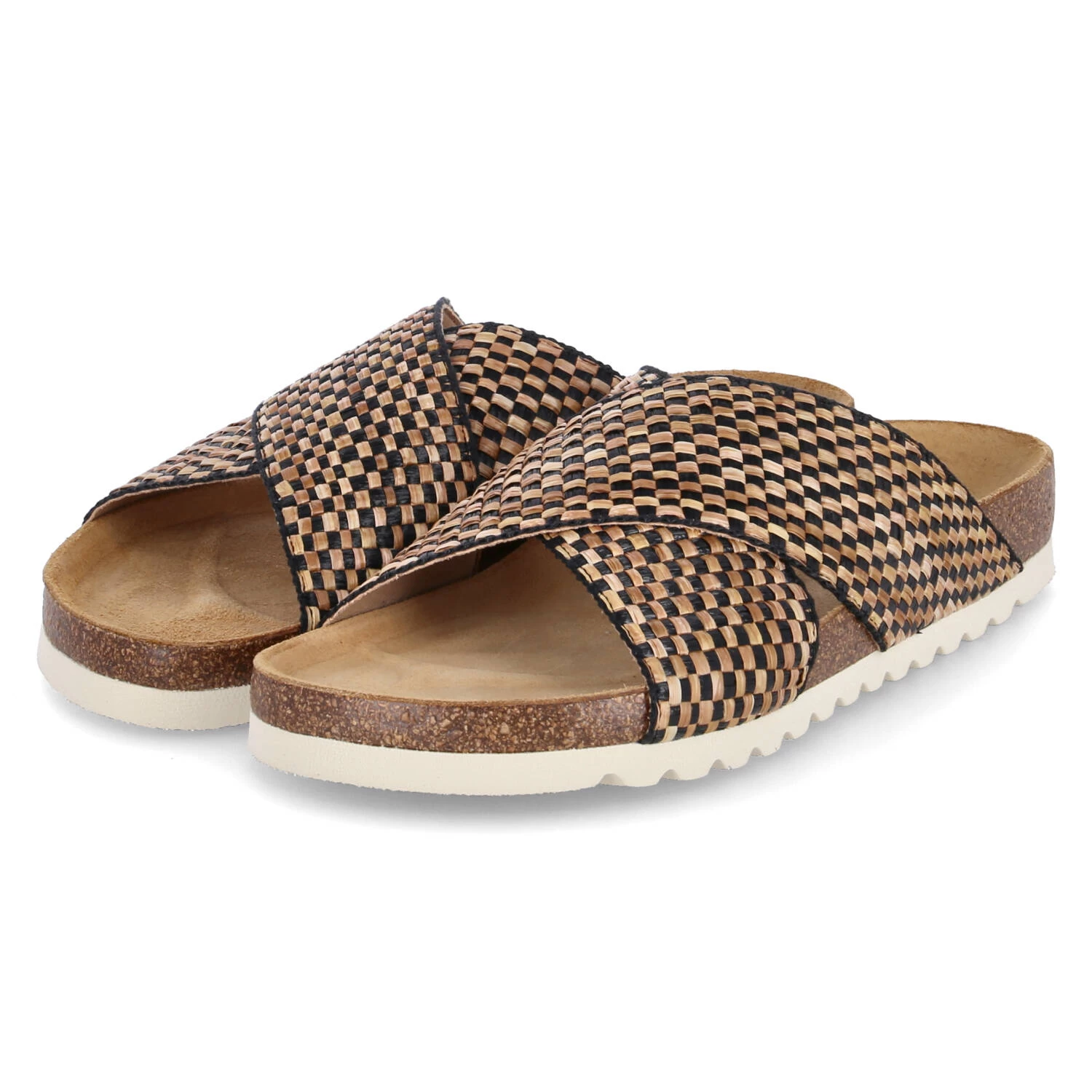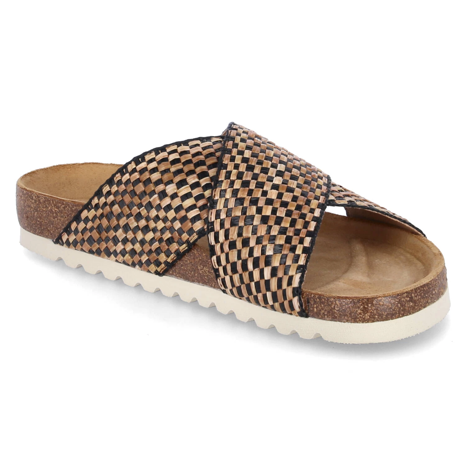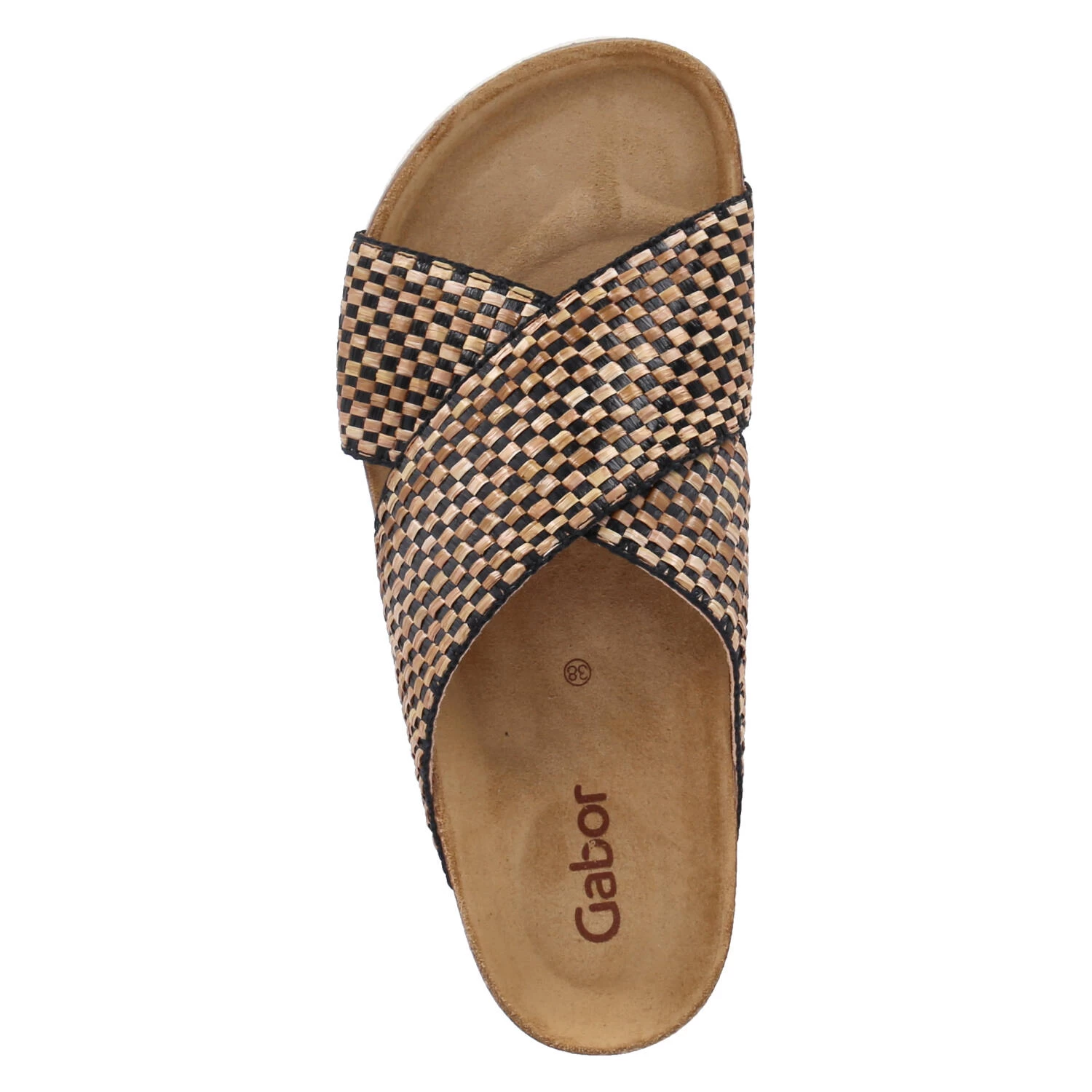 Gabor Damen Pantoletten Beige-Schwarz geflochtener Bast – breite, gekreuzte Riemen – gepolstertes TieffuĂźbett – leichte, flexible Laufsohle mit Profil