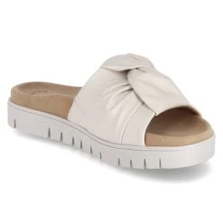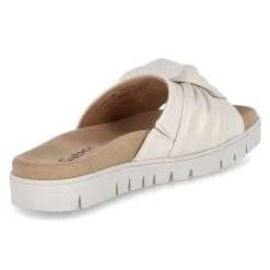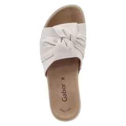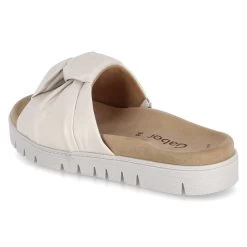 Gabor Damen Pantoletten Beige Glattleder – zierendes Knotenelement – Riemen mit kleinem Elastikeinsatz – gepolstertes FuĂźbett – rutschhemmende Laufsohle