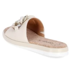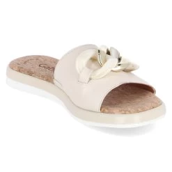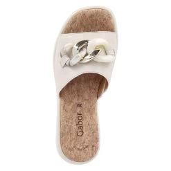Gabor Damen Pantoletten Beige Glattleder – zierendes Kettenelement – seitlicher Elastikeinsatz – gepolstertes TieffuĂźbett in Korkoptik – flexible, rutschhemmende Laufsohle