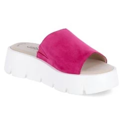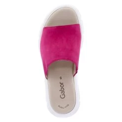 Gabor Damen Pantoletten Pink Rauleder – offener Zehenbereich – Elastikeinsatz am Spann – angenehmes Lederfutter – gepolsterte Decksohle – robuste, rutschhemmende Profilsohle – ca. 4 cm Plateau