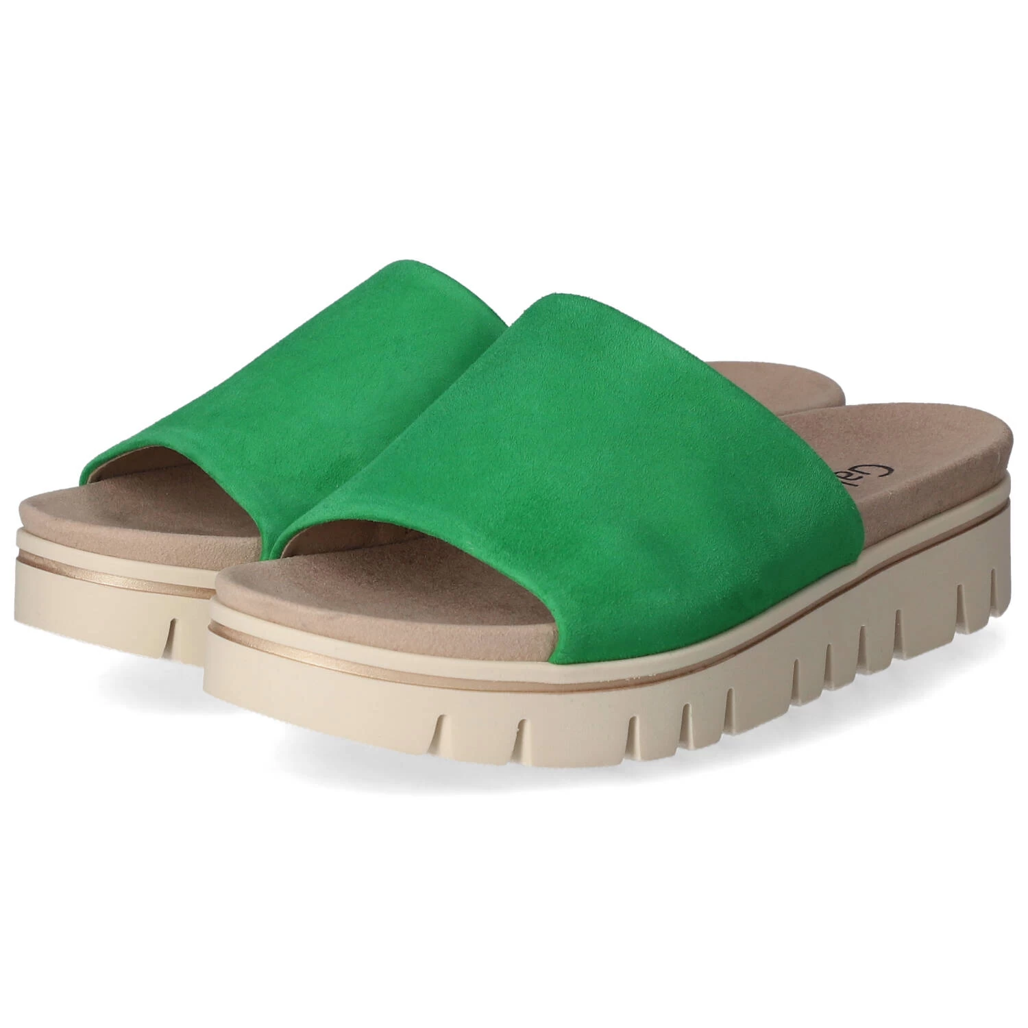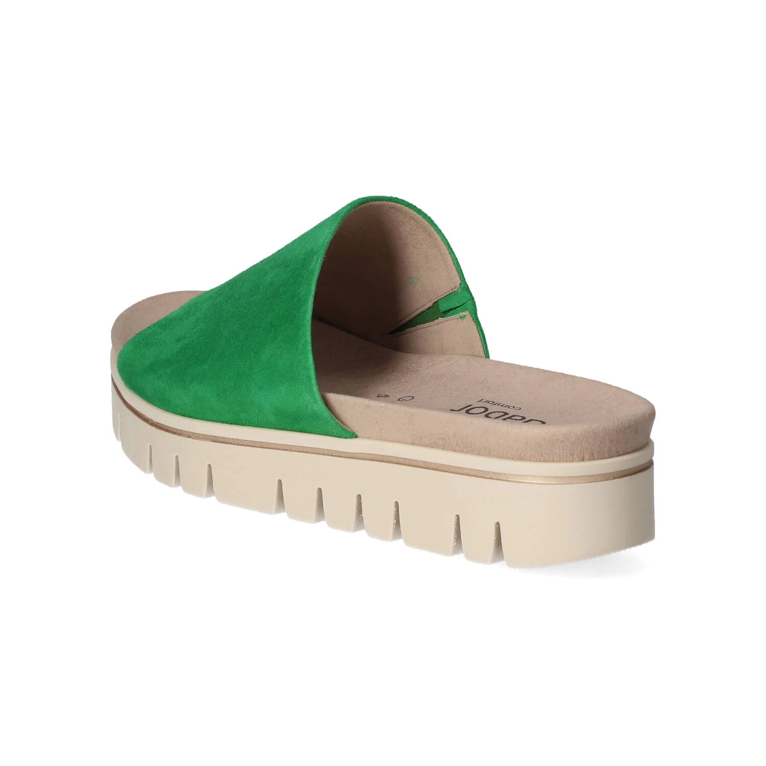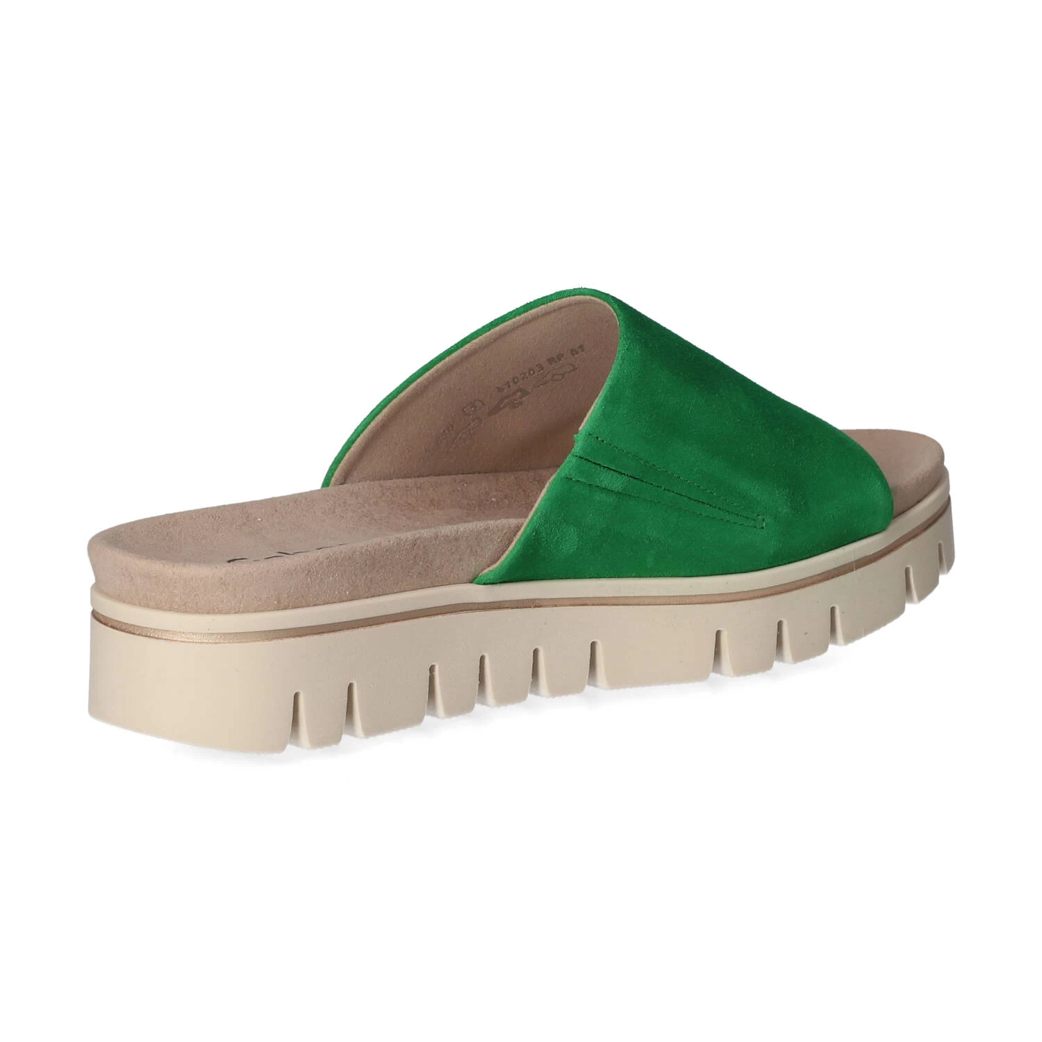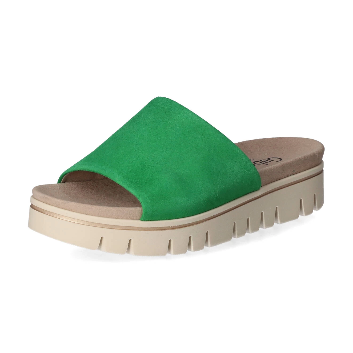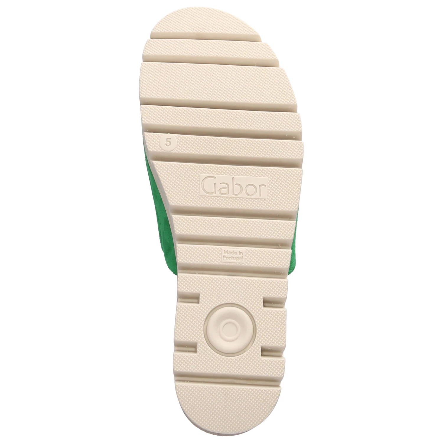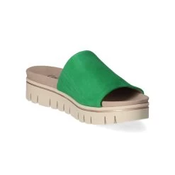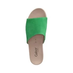 Gabor Damen Pantoletten GrĂĽn Rauleder – Riemen mit Elastikeinsatz – vorgeformte Decksohle – flexible, rutschhemmende Profilsohle