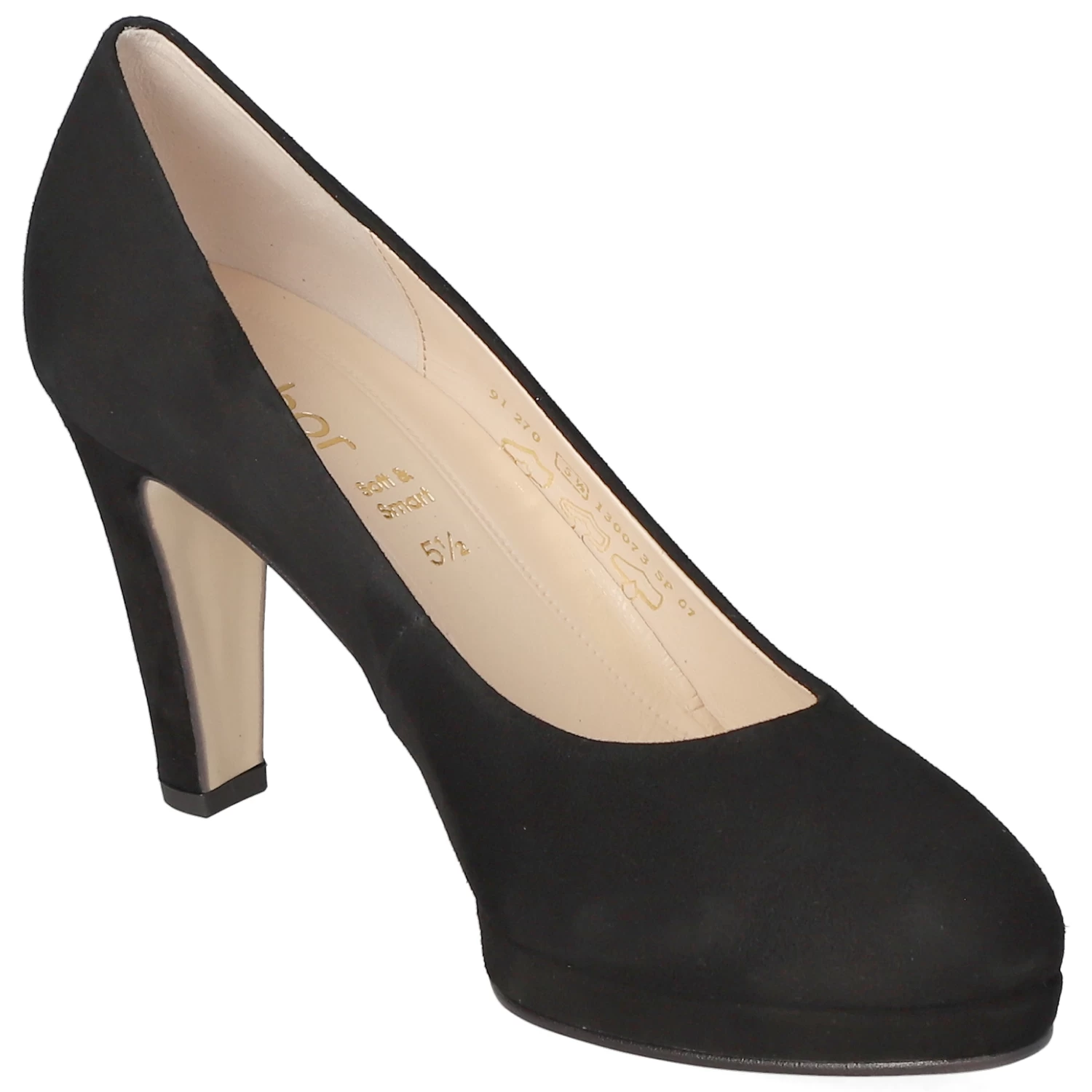 Gabor Damen Pumps Schwarz Rauleder – verstärkter Fersen und Zehenbereich – gepolstertes FuĂźbett – Antislide Laufsohle