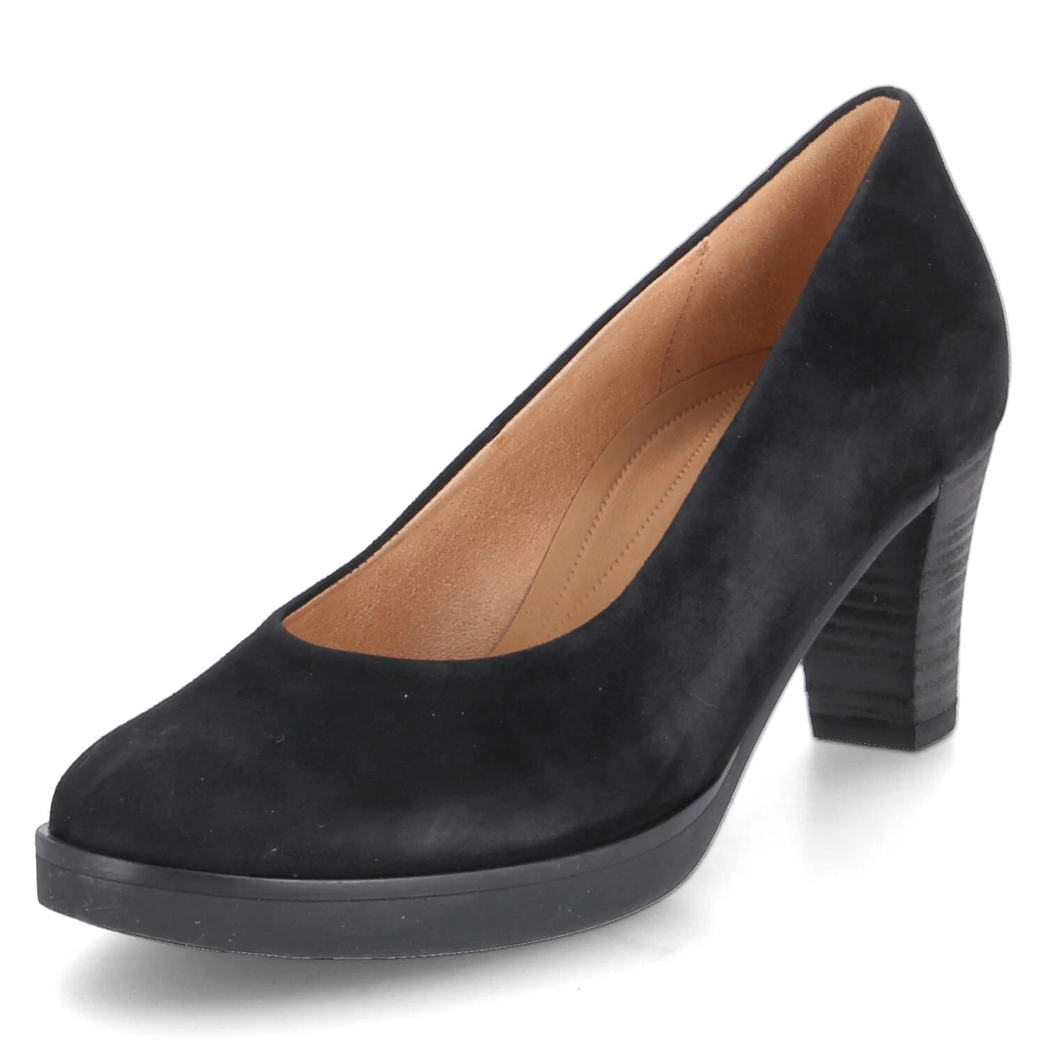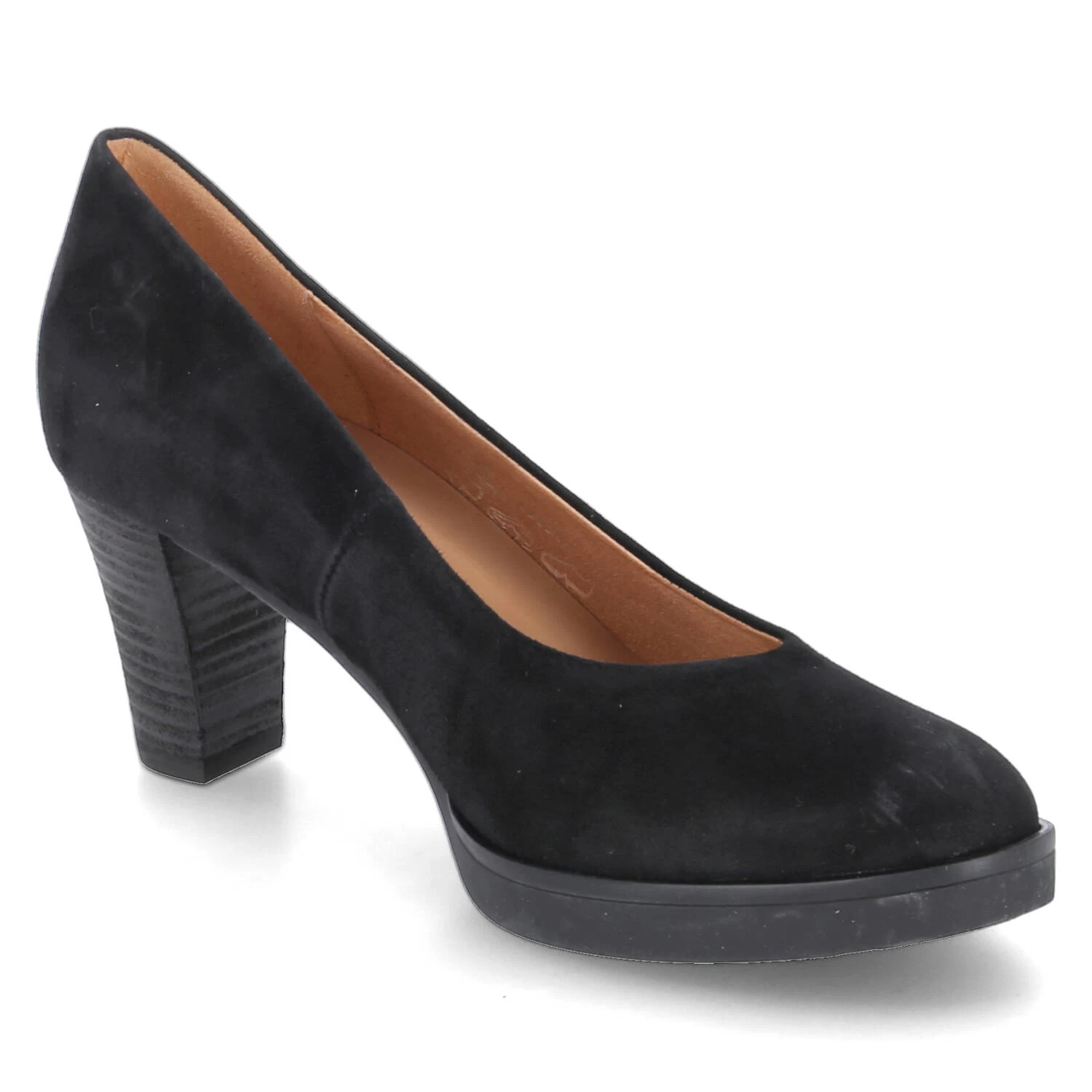 Gabor Damen Pumps Schwarz Rauleder – samtige Oberfläche – chunky Trichterabsatz – gepolstertes LederfuĂźbett – flexible, rutschhemmende Laufsohle