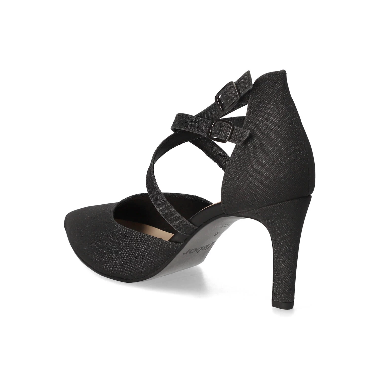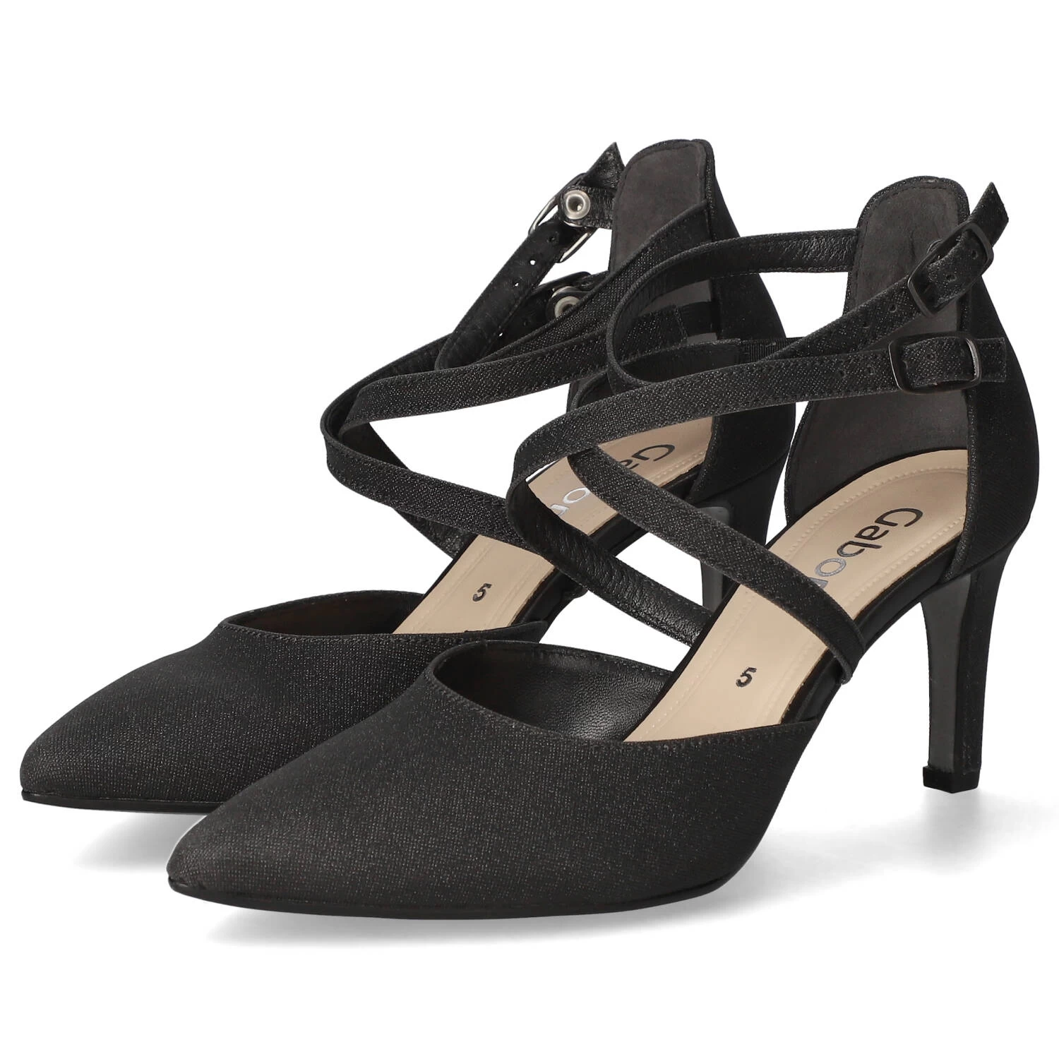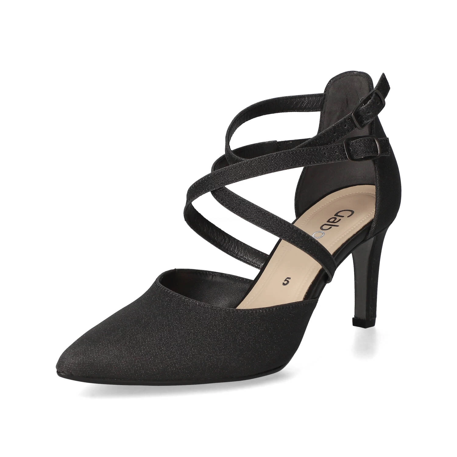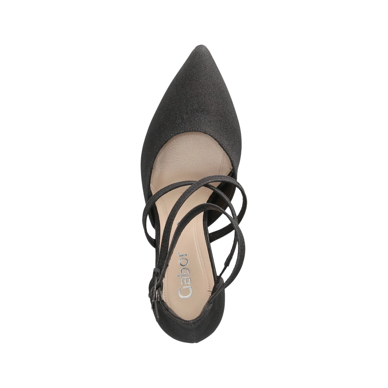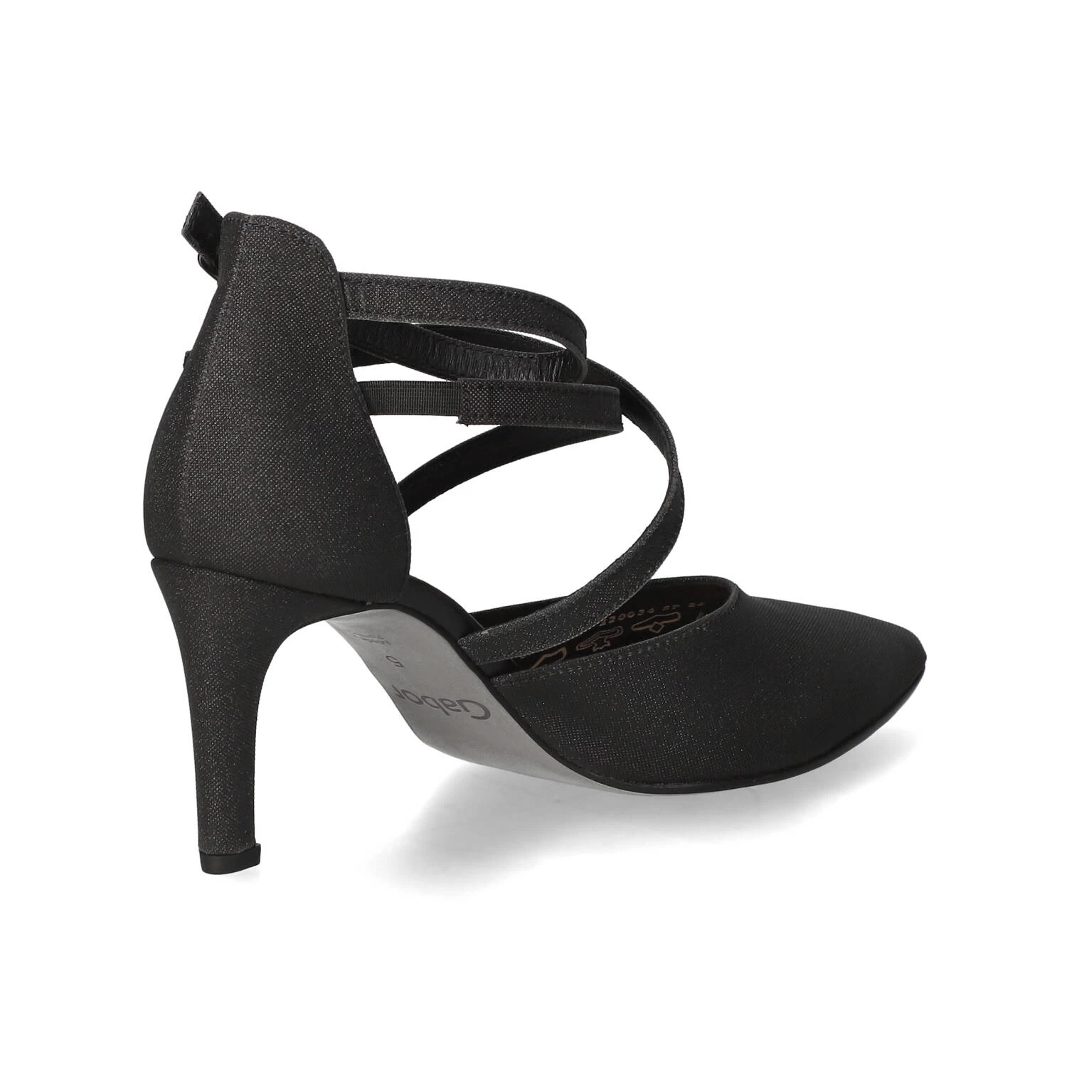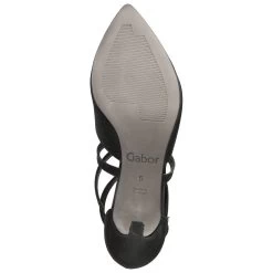 Gabor Damen Pumps/ Spangenpumps Schwarz Synthetik – elegantes Design – modisch gekreuzte Riemen – Knöchelriemen mit Schnalle und Druckknopf – verstärkte Ferse – dezent gepolsterte Lederdecksohle – flexible, rutschhemmende Laufsohle mit leichtem Profil – eleganter Trichterabsatz