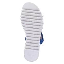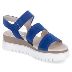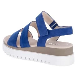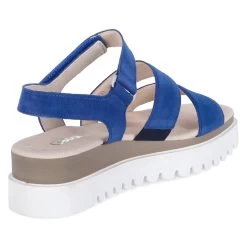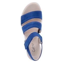 Gabor Damen Sandalen Blau Rauleder – Knöchelriemen mit Klettverschluss – gepolsterte Lederdecksohle – mittlerer Riemen mit Elastikeinsatz – robuste, weiße Profilsohle