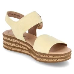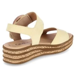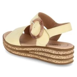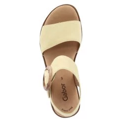 Gabor Damen Sandaletten/ Sandalen Gelb Rauleder – Klettverschlussriemen mit Zierschnalle – gepolsterte Lederdecksohle – Lederfutter – leichte Laufsohle mit seitlicher Korkoptik