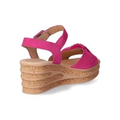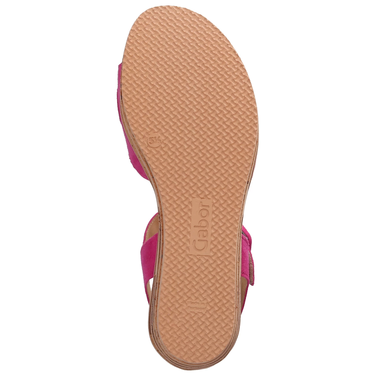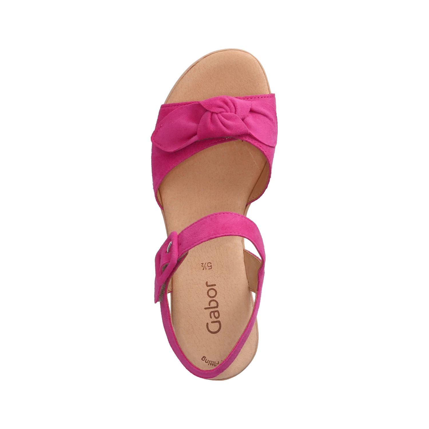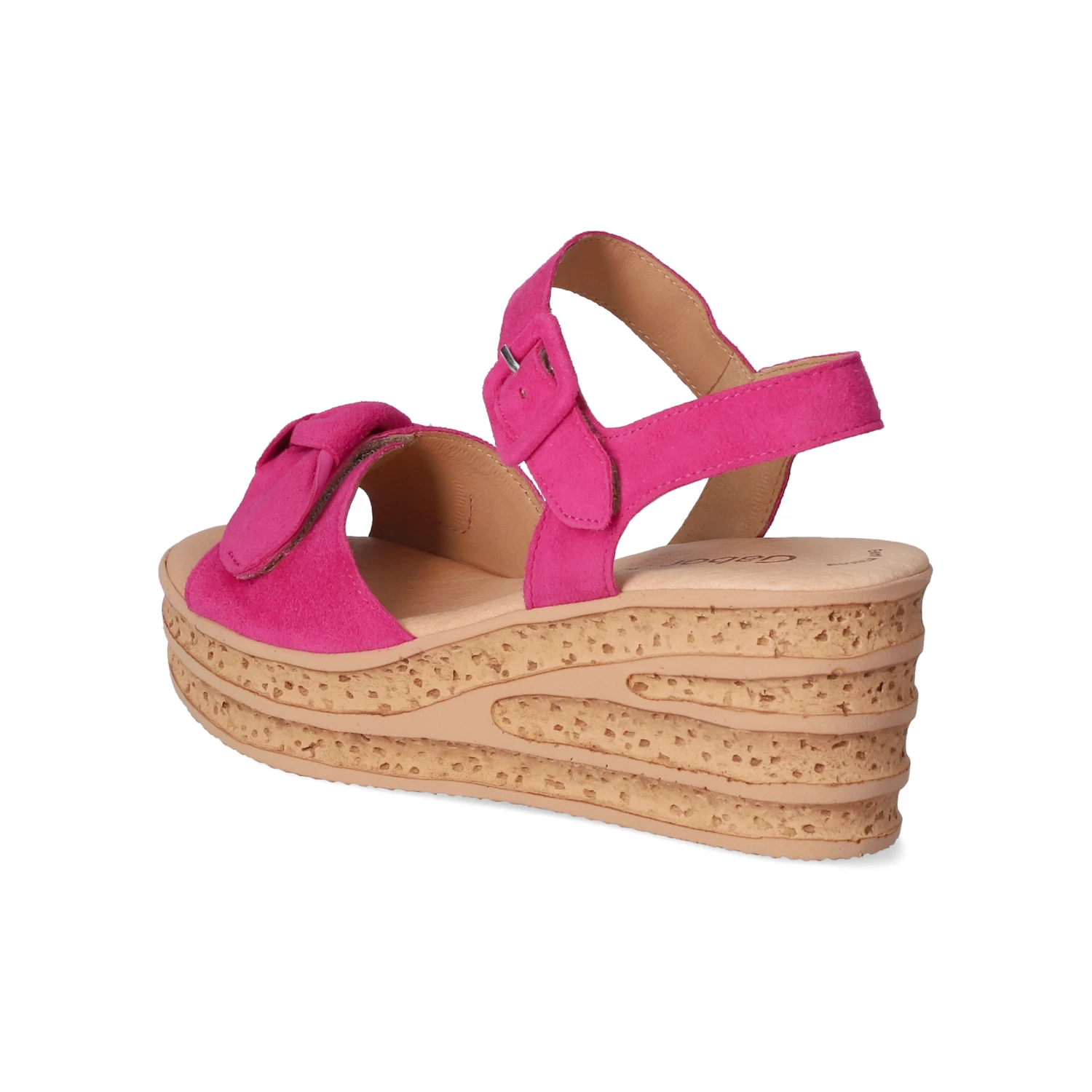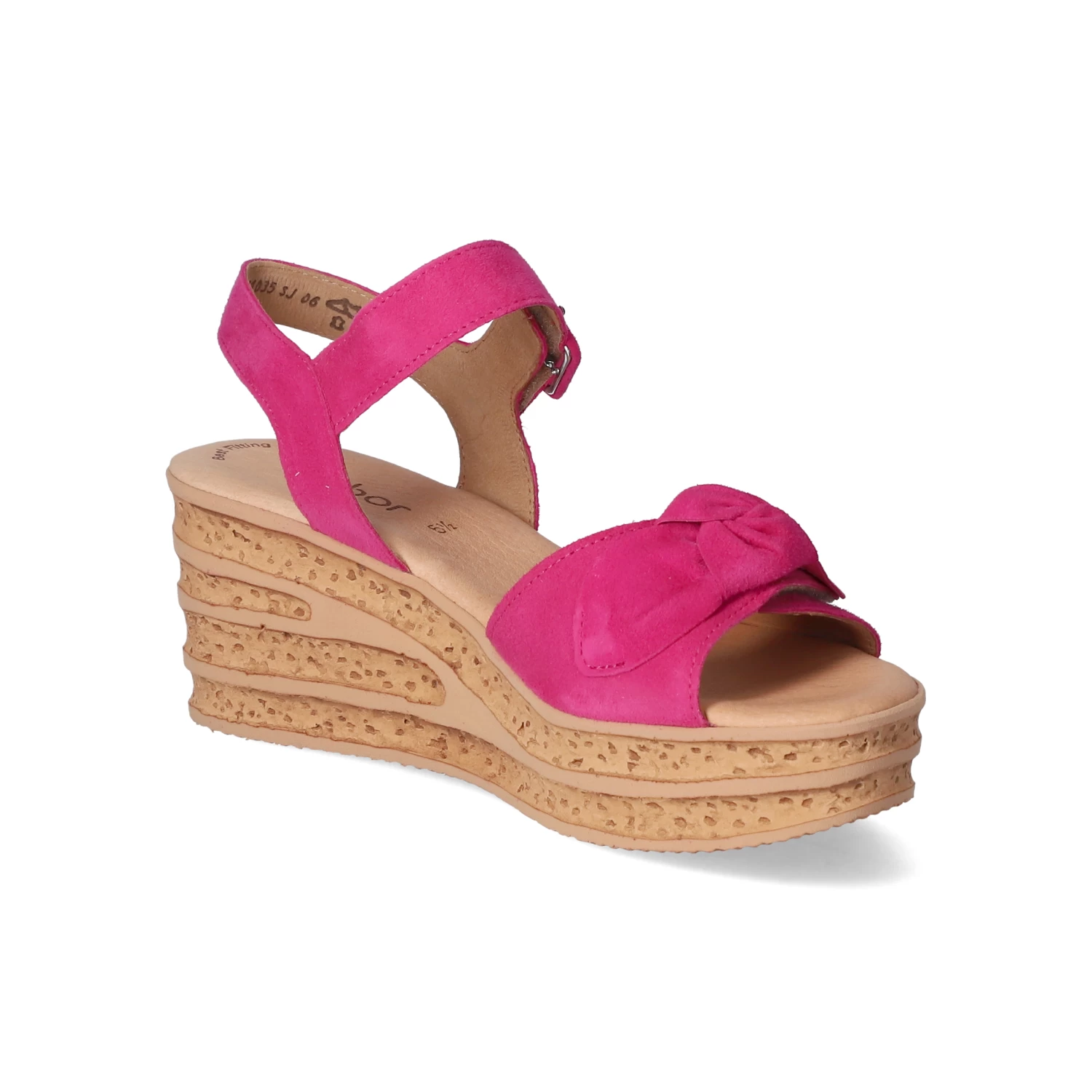 Gabor Damen Sandaletten/ Keilsandaletten/ Wedges Pink Rauleder – zierende Schleifenelemente – Riemen mit Klettverschluss und Zierschnalle – gepolsterte Lederdecksohle – robuste, rutschhemmende Laufsohle mit leichtem Profil – stabiler Keilabsatz in Korkoptik