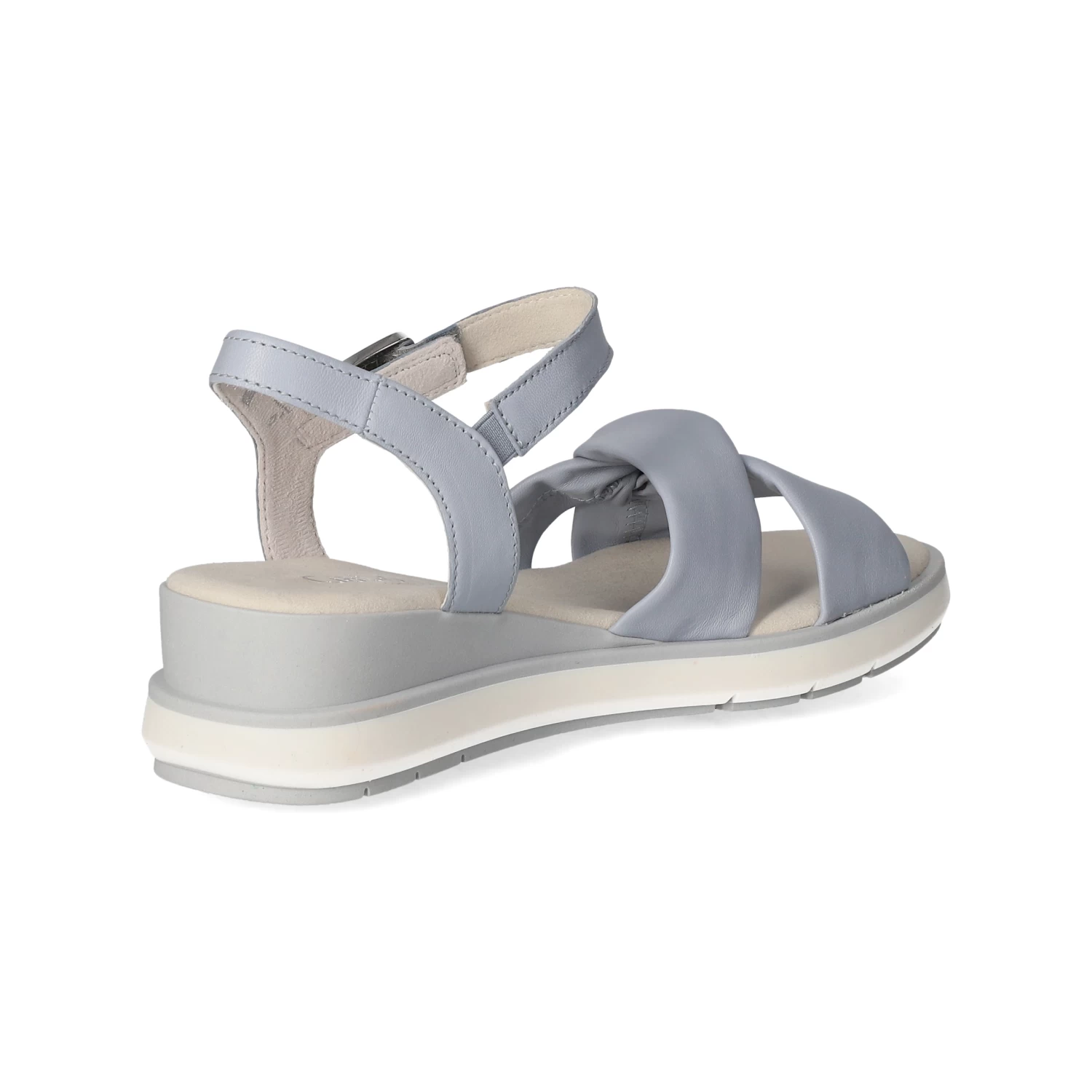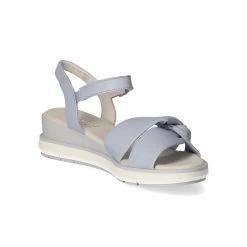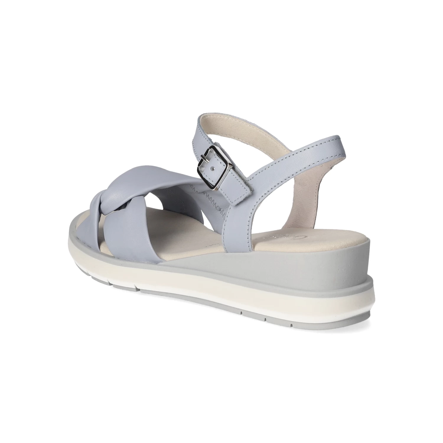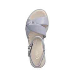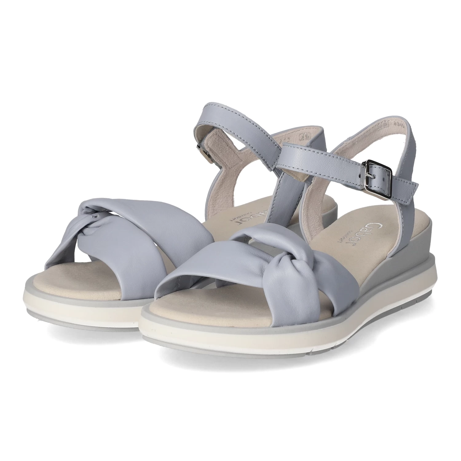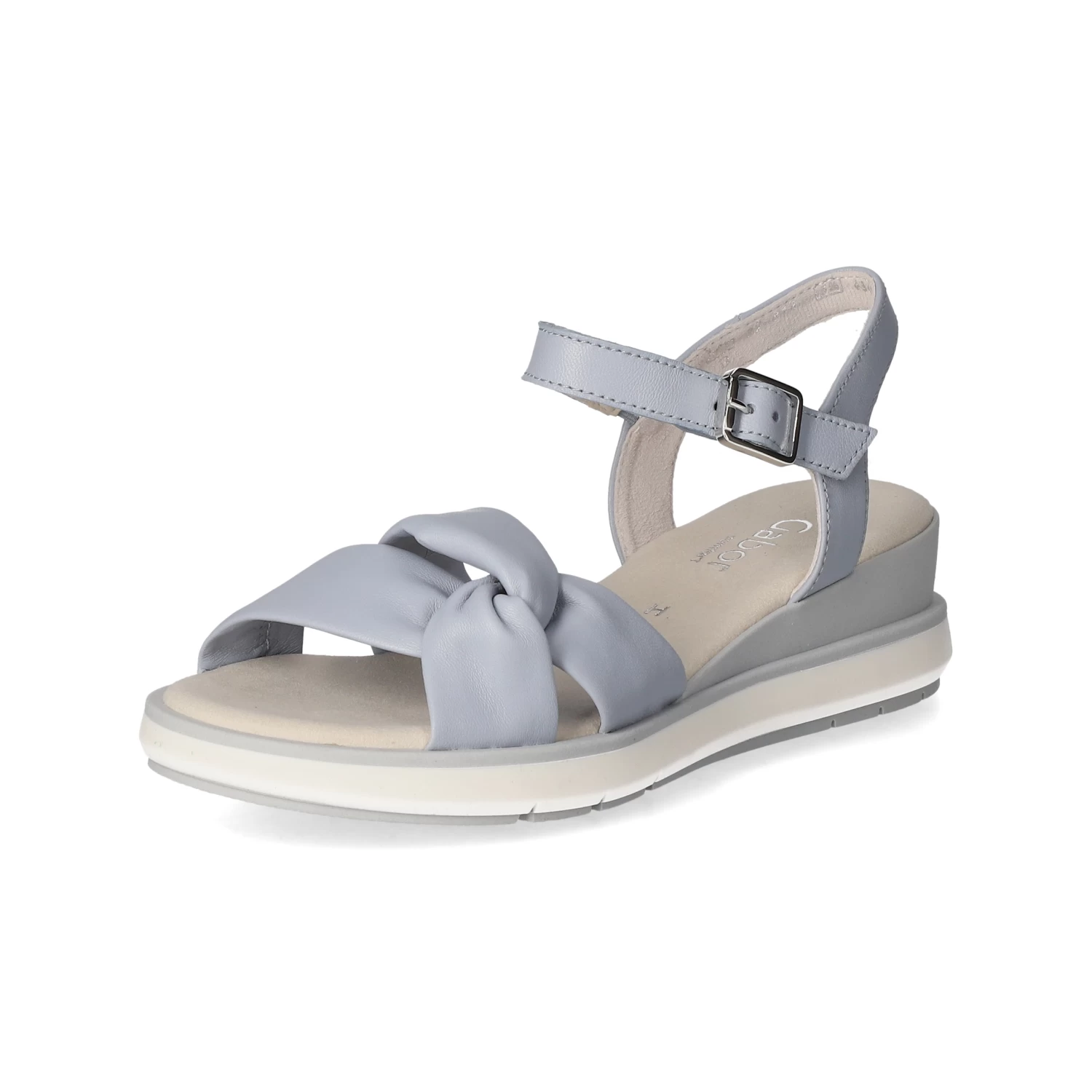 Gabor Damen Sandaletten/ Keilsandaletten/ Wedges Blau Glattleder – modisch geknotete Riemen – Knöchelriemen mit Klettverschluss und verstellbarer Schnalle – gepolsterte Decksohle – flexible, rutschhemmende Laufsohle mit leichtem Profil – stabiler Keilabsatz