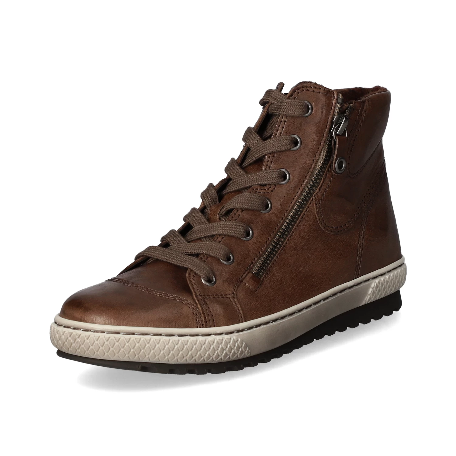 Gabor Damen Schnürstiefeletten /Stiefeletten Braun Glattleder – sportliches Design – Schnürung – Used-Look am Sohlenrand – zwei Reißverschlüsse seitlich am Spann – modische Ziernähte – angenehmes Textilfutter – Wechseldecksohle – verstärkter Fersenbereich – flexible Profilsohle