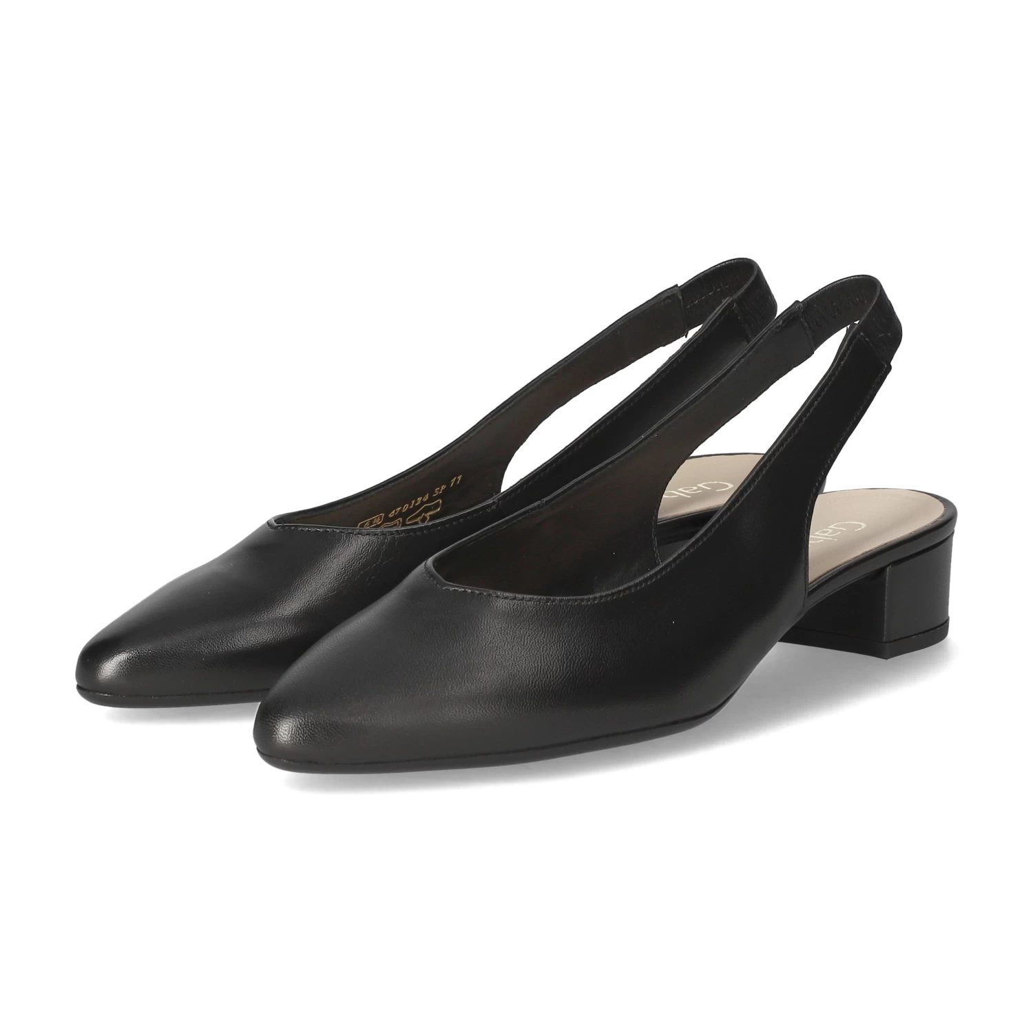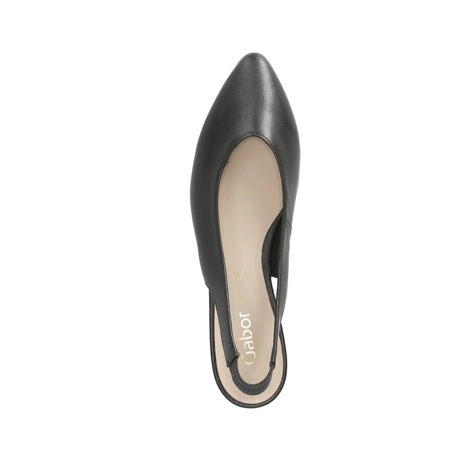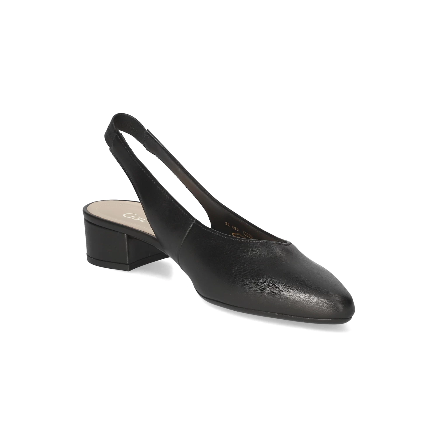 Gabor Damen Pumps/ Slingpumps Schwarz Glattleder – Fersenriemen mit Elastikeinsatz – leicht gepolstertes LederfuĂźbett – flexible, rutschhemmende Laufsohle mit leichtem Profil – stabiler Blockabsatz