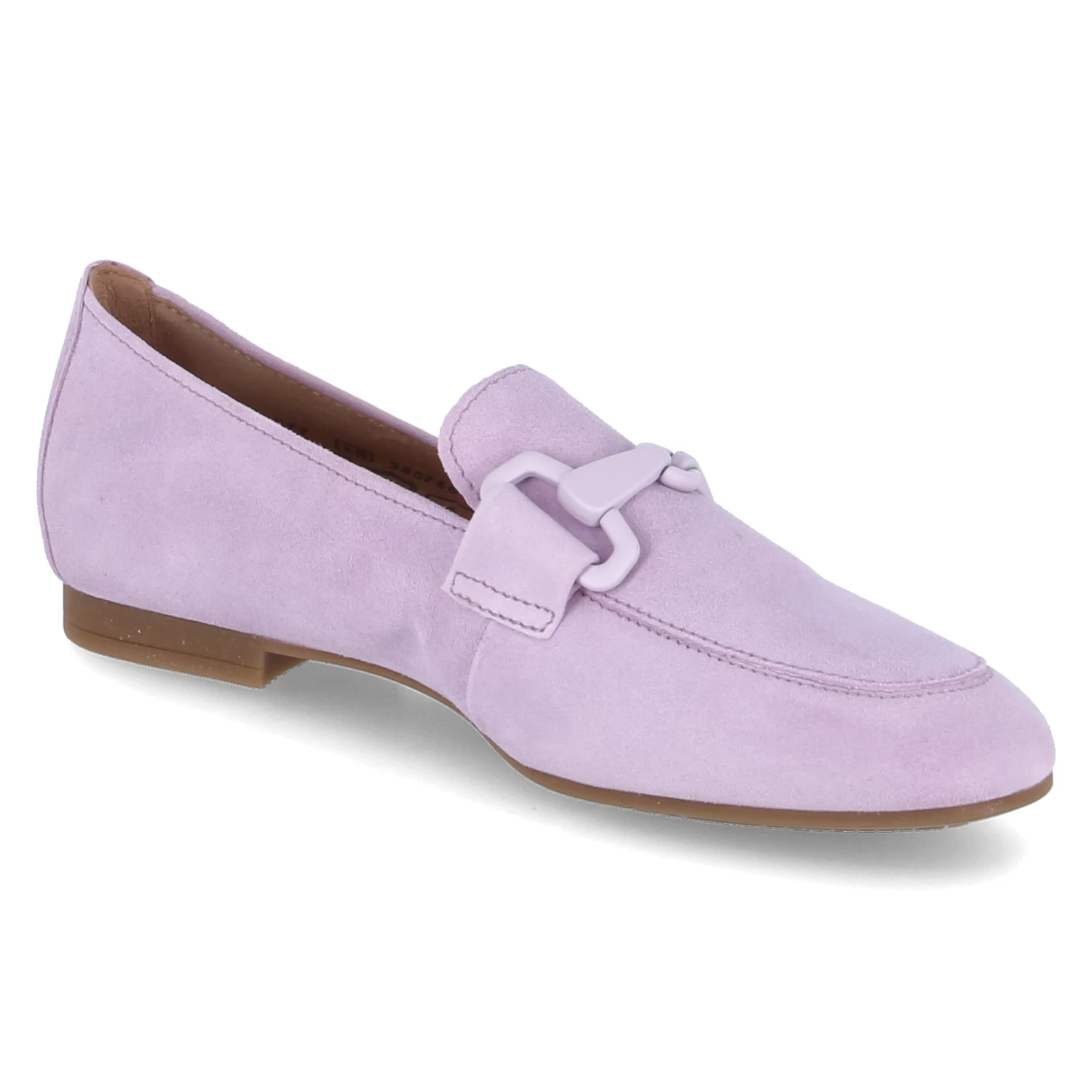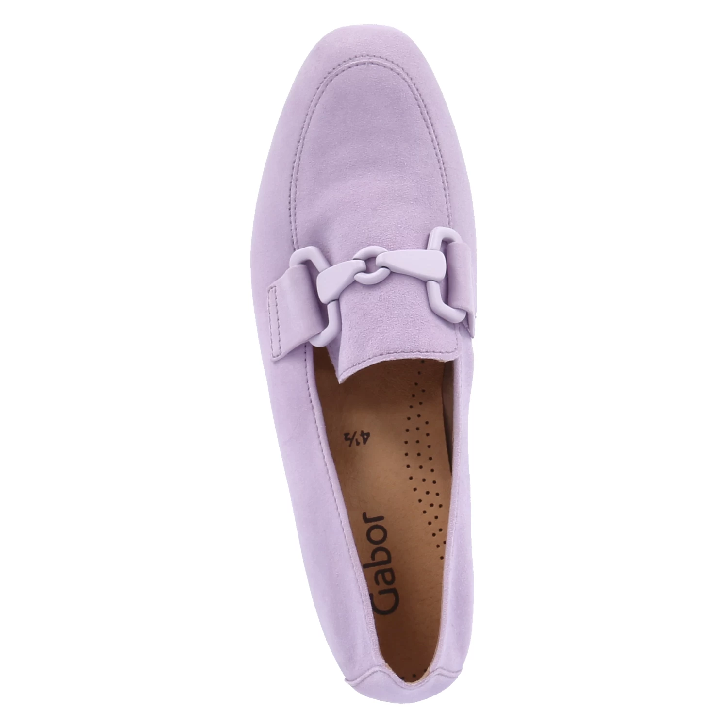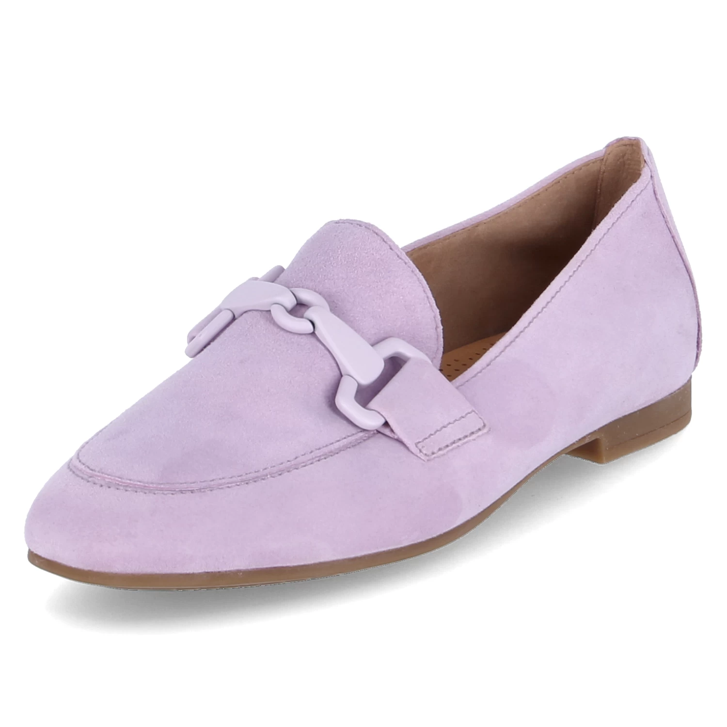 Gabor Damen Slipper/ Loafer Violett Rauleder – klassischer Zierriemen ĂĽber dem Spann – verstärkte Fers – gepolsterte Lederdecksohle – flexible Laufsohle