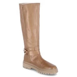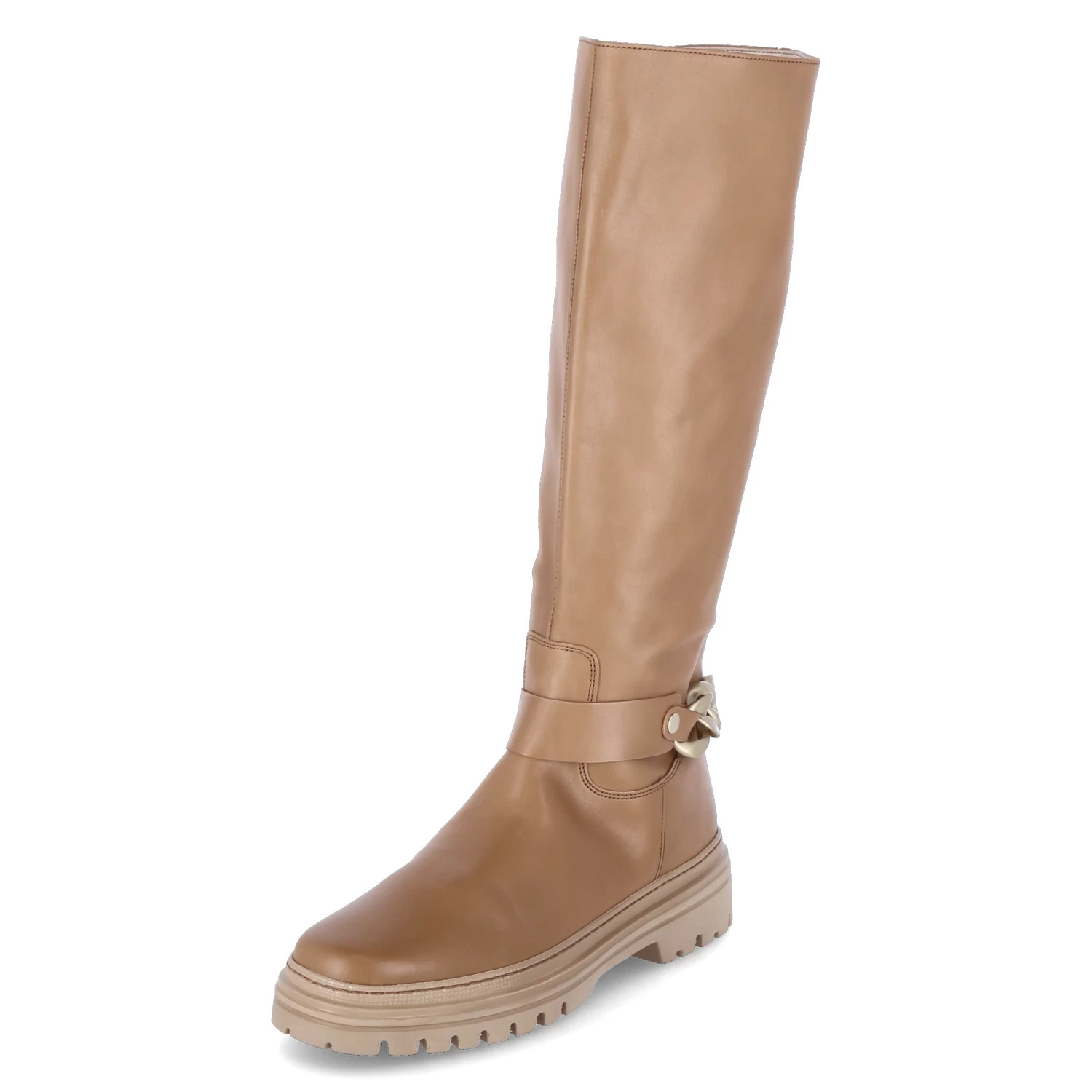 Gabor Damen Stiefel Braun Glattleder – ReiĂźverschluss – mattgoldenes Kettenelement am Knöchelriemen – verstärkte Ferse – flexible, rutschhemmende Laufsohle – angenehmes Textilfutter – herausnehmbares FuĂźbett – Schaftweite M