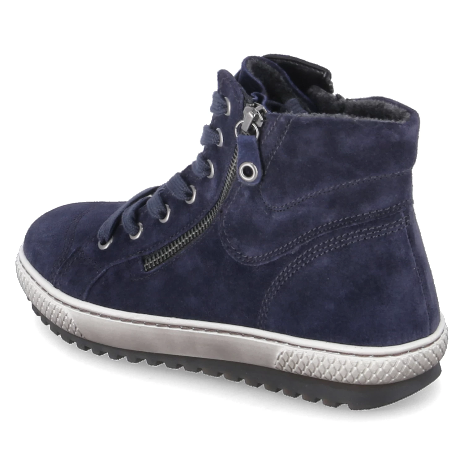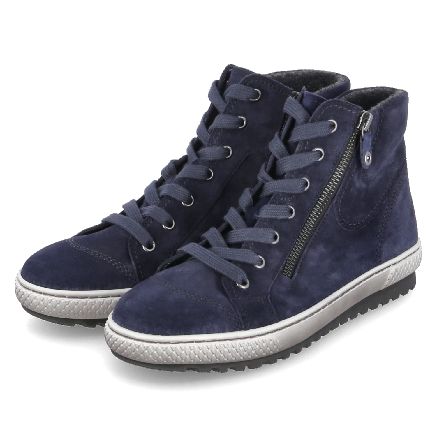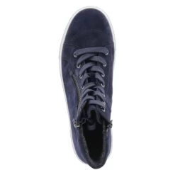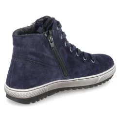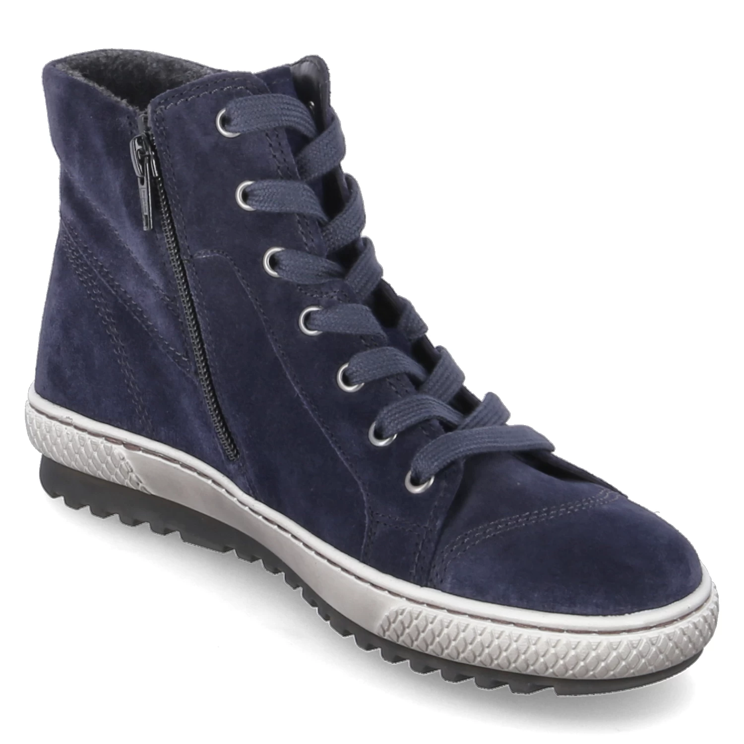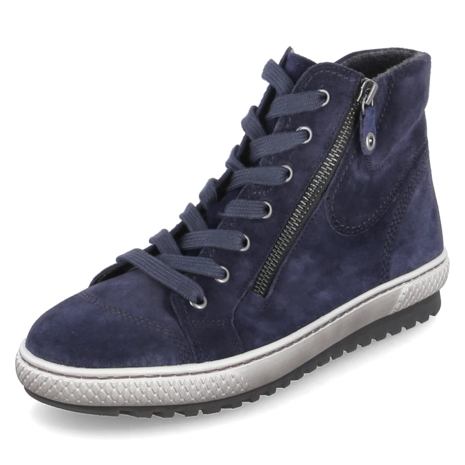 Gabor Damen Stiefeletten Blau Rauleder – SchnĂĽrung und zwei ReiĂźverschlĂĽsse – Ziernähte – gepolsterter Einstieg – verstärkter Zehen- und Fersenbereich – Fleecefutter fĂĽr kĂĽhle Tage – WechselfuĂźbett – flexible Laufsohle