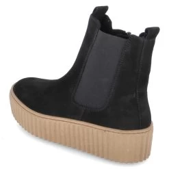 Gabor Damen Stiefeletten Schwarz Rauleder – ReiĂźverschluss – elastischer Einsatz am Schaft – zwei Anziehlaschen – gepolstertes WechselfuĂźbett – verstärkter Fersenbereich – rutschhemmende Laufsohle – auffälliger, beiger Sohlenrahmen