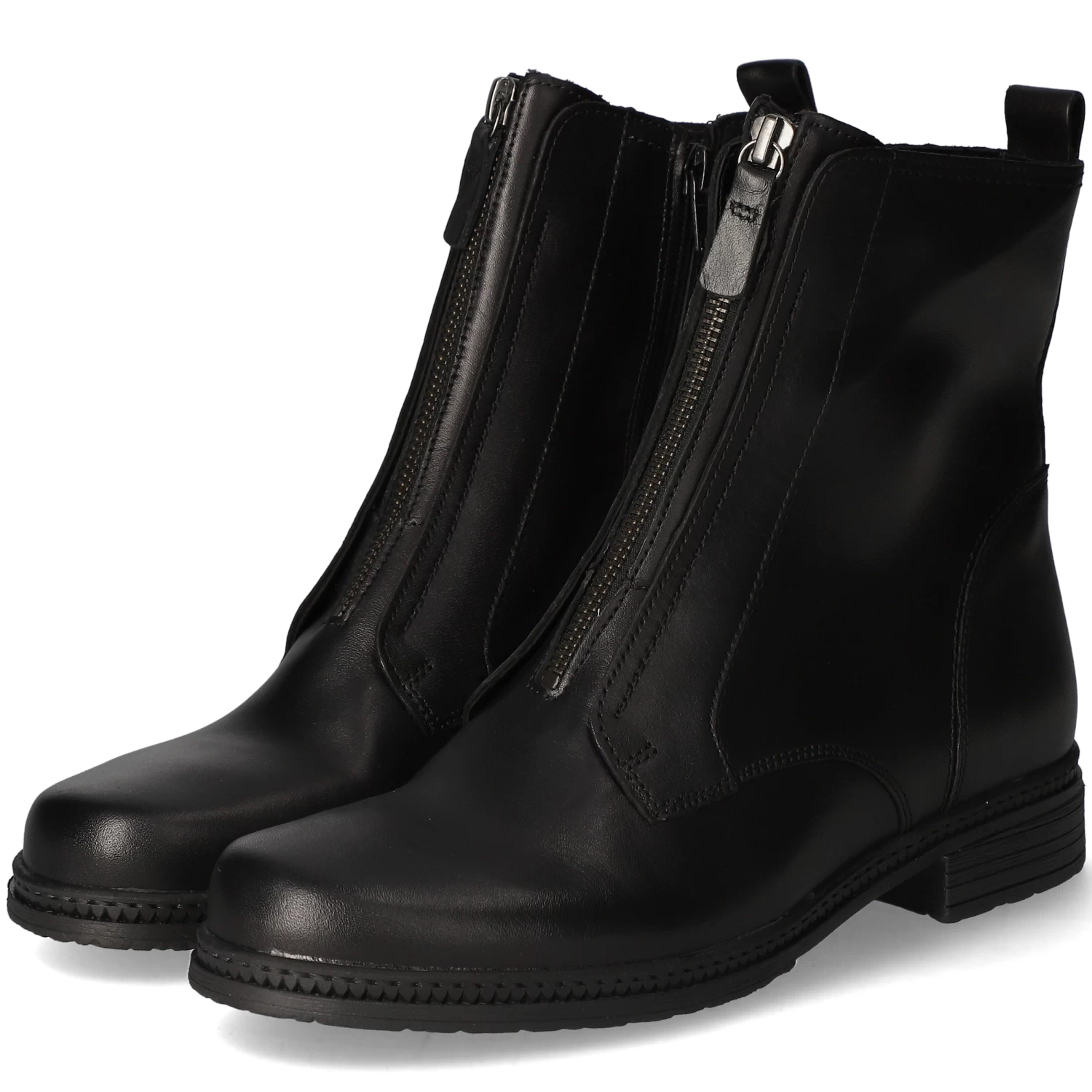 Gabor Damen Stiefeletten Schwarz Glattleder – zwei ReiĂźverschlĂĽsse – Warmfutter – Ziernähte – gepolstertes WechselfuĂźbett – flexible, rutschhemmende Laufsohle – ca. 3 cm Blockabsatz