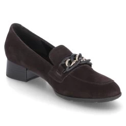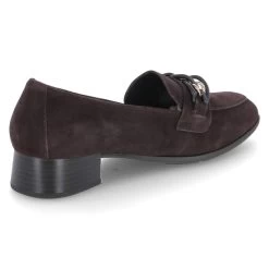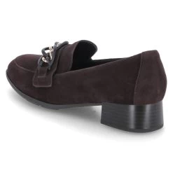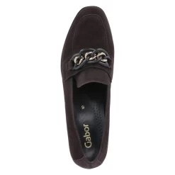 Gabor Damen Pumps/ Hochfrontpumps/ Trotteurs Braun Rauleder – modischer Zierriemen mit Kettenelement – verstärkte Ferse – angenehmes Lederfutter – gepolsterte Lederdecksohle – flexible, rutschhemmende Profilsohle – stabiler Blockabsatz in Holzoptik