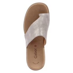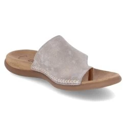 Gabor Damen Pantoletten/ Zehentrenner Taupe Rauleder – mit Bronze marmorierte Oberfläche – gepolsterte, vorgeformte Decksohle – flexible und rutschhemmende Laufsohle