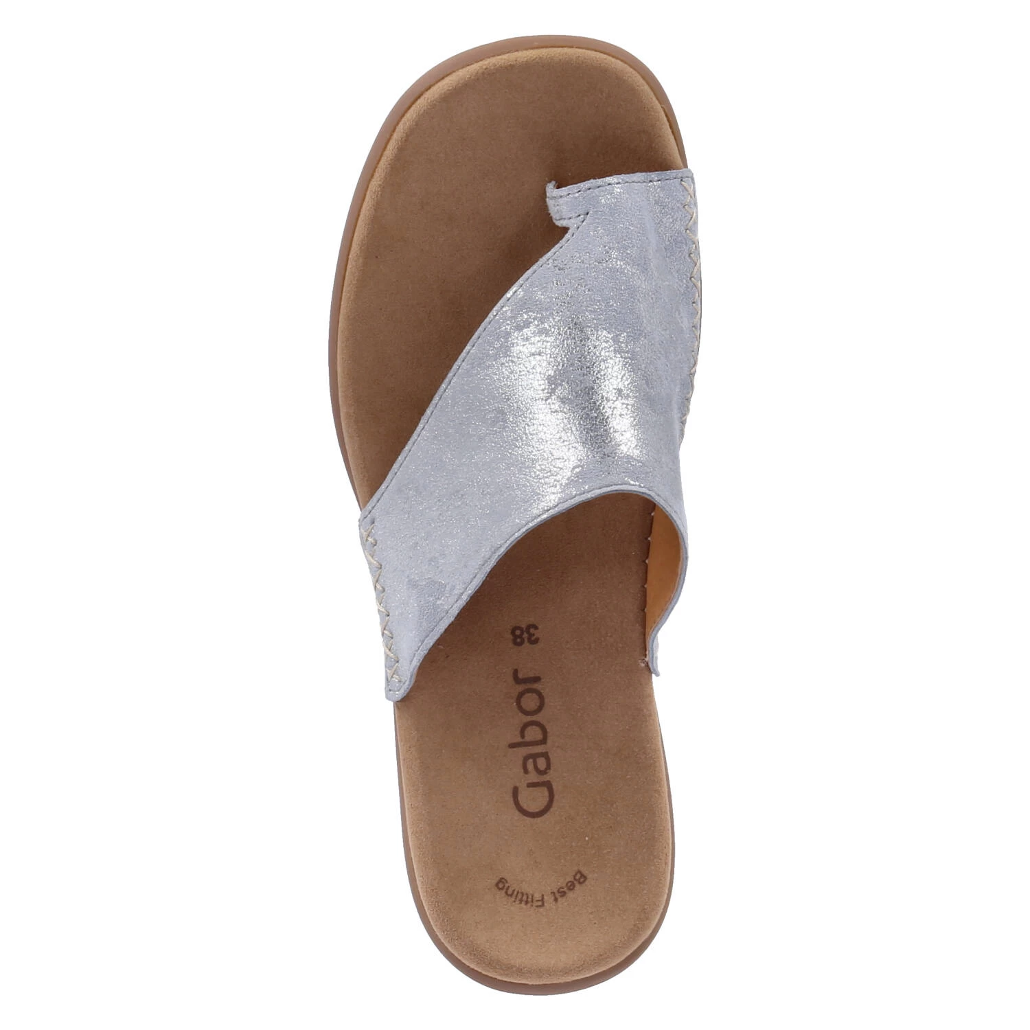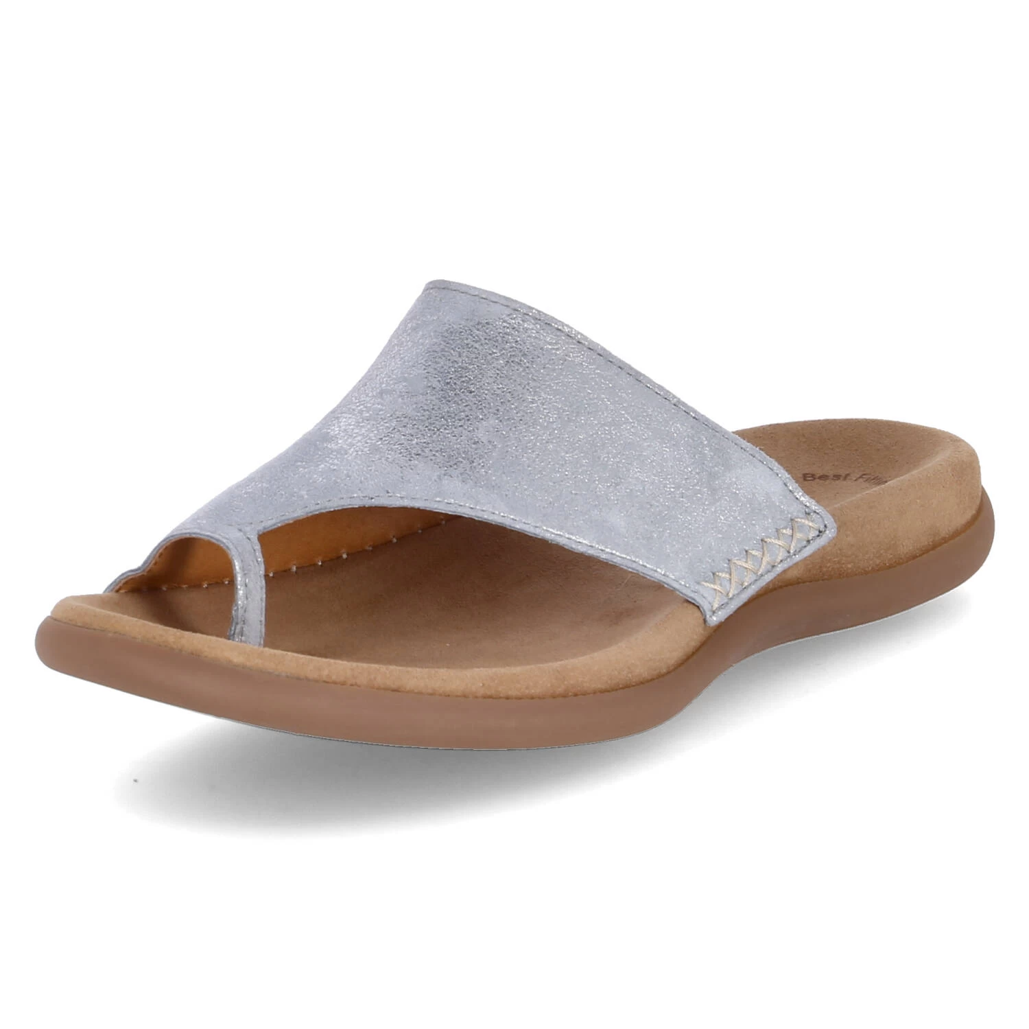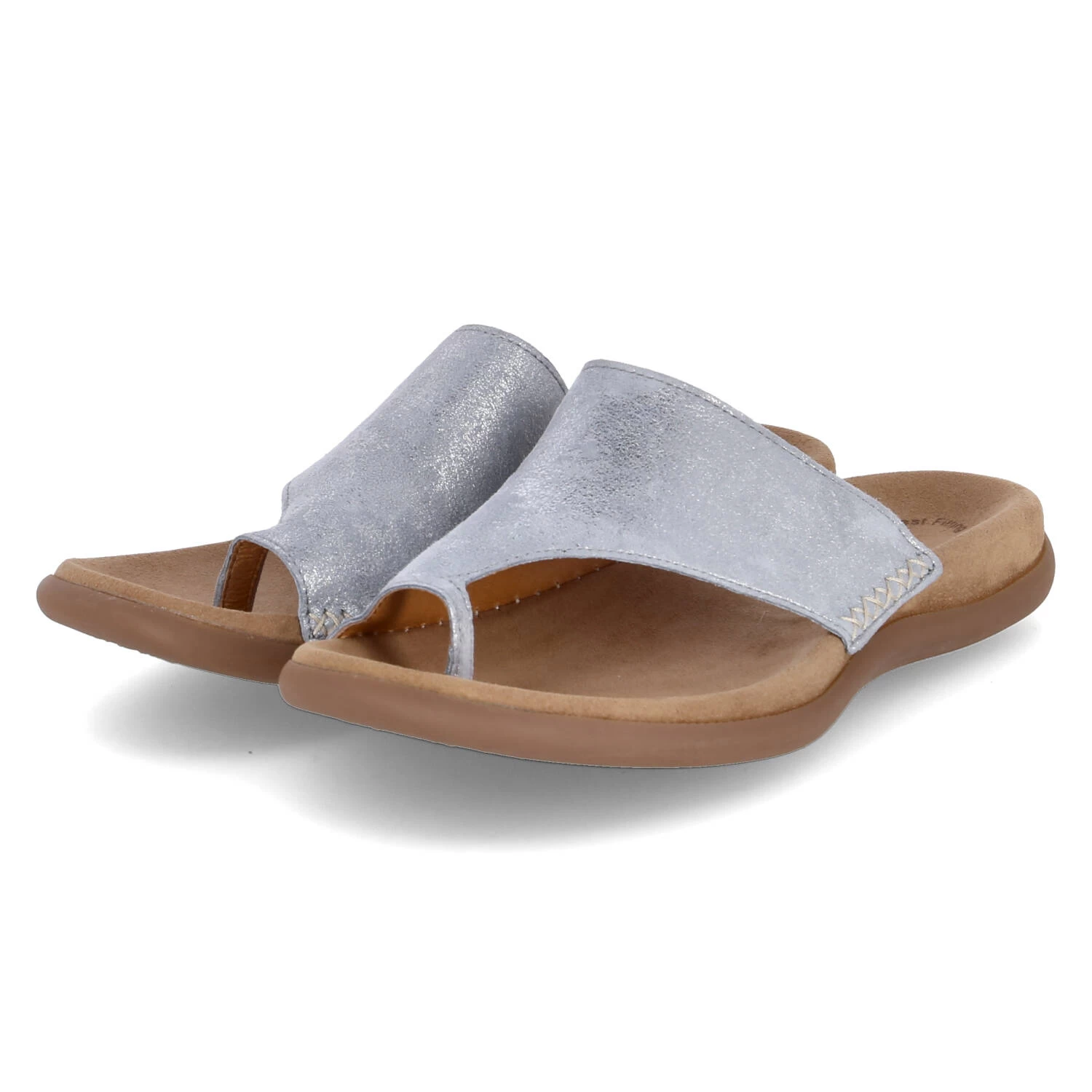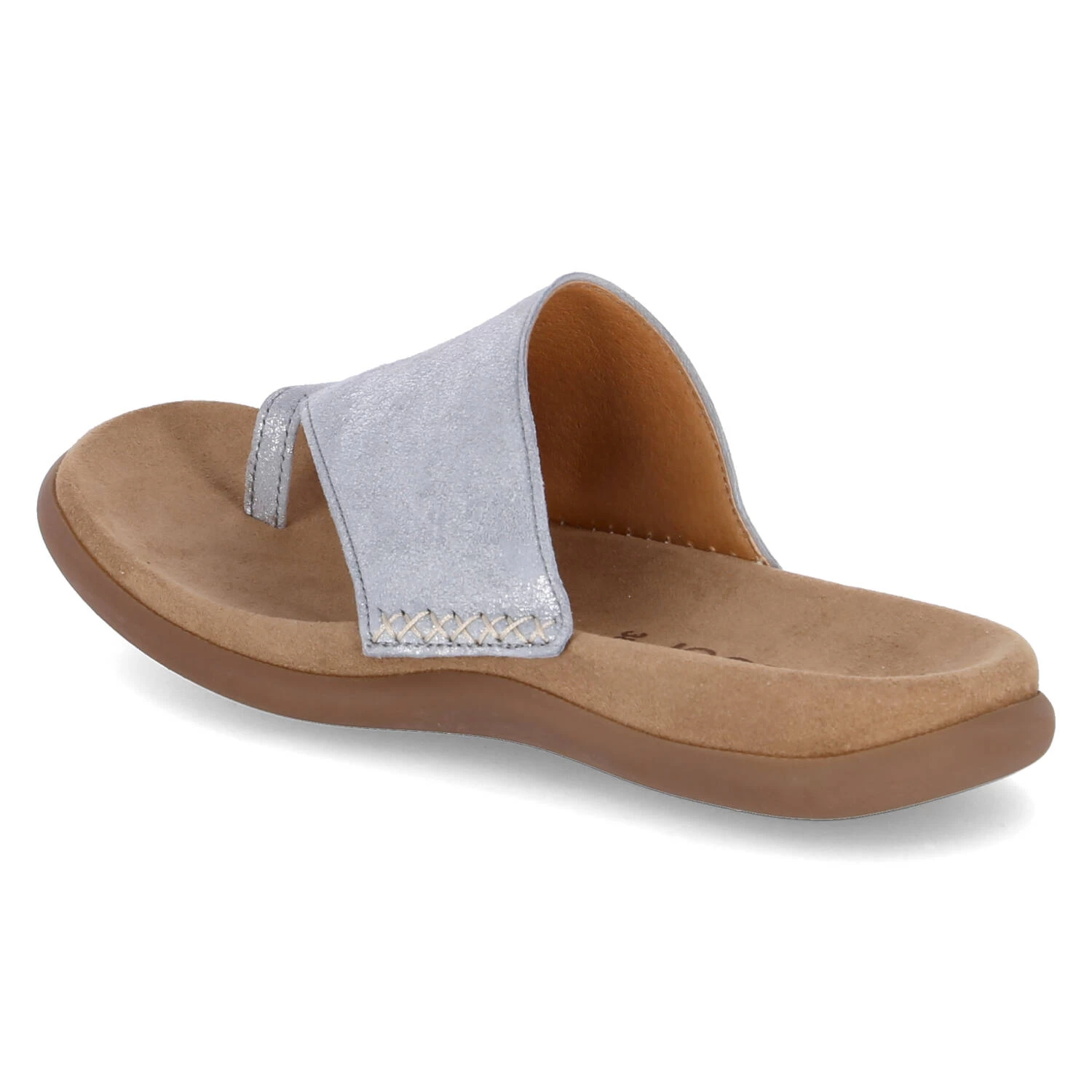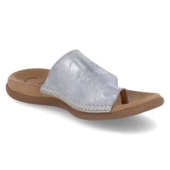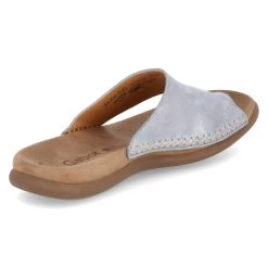 Gabor Damen Pantoletten/ Zehentrenner Blau Rauleder – teils metallischer Glanz – Ziernähte – vorgeformtes TieffuĂźbett – flexible, rutschhemmende Laufsohle