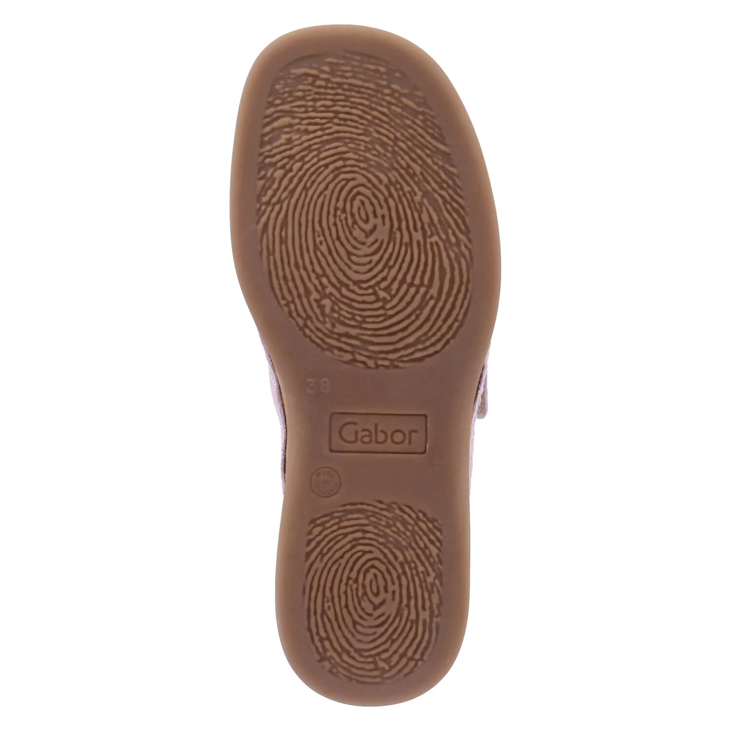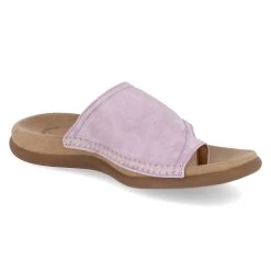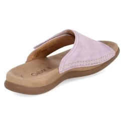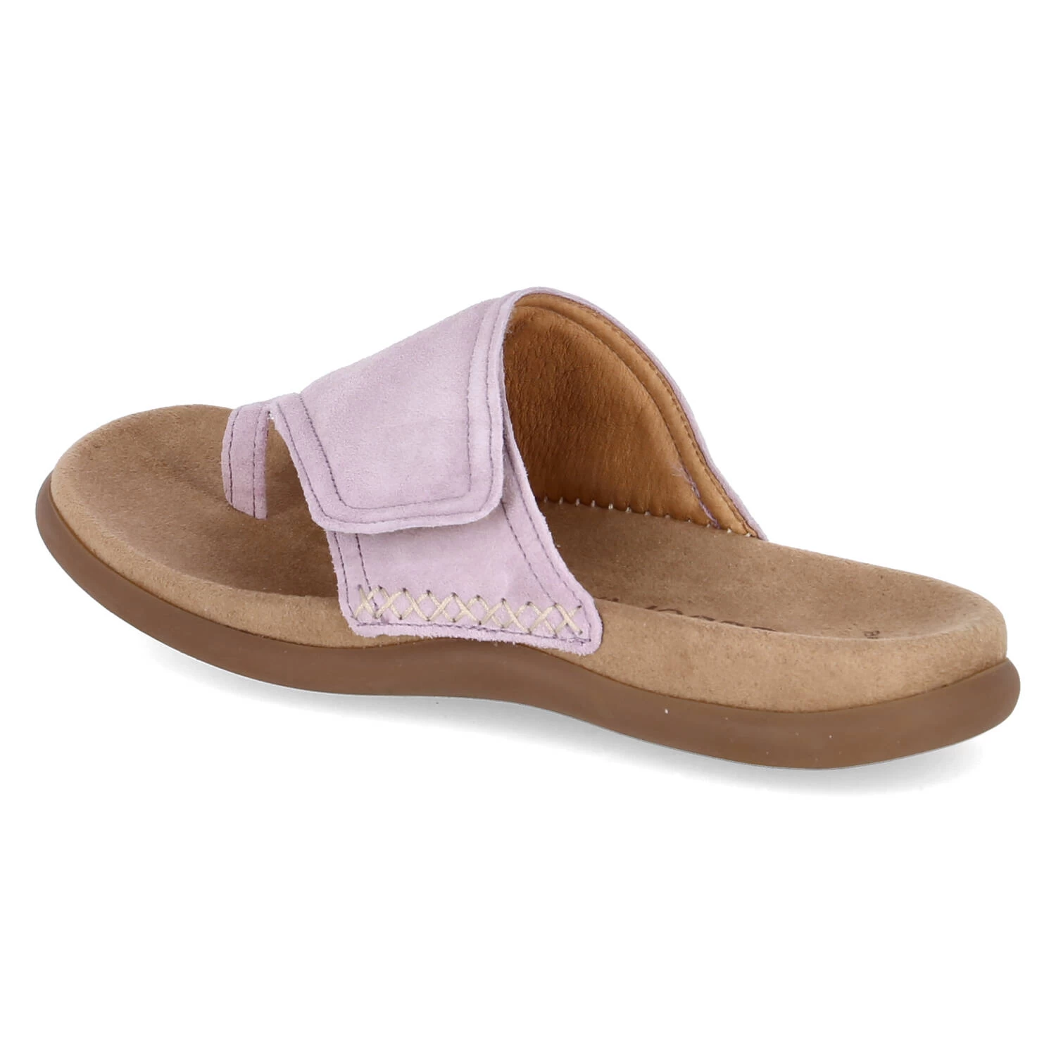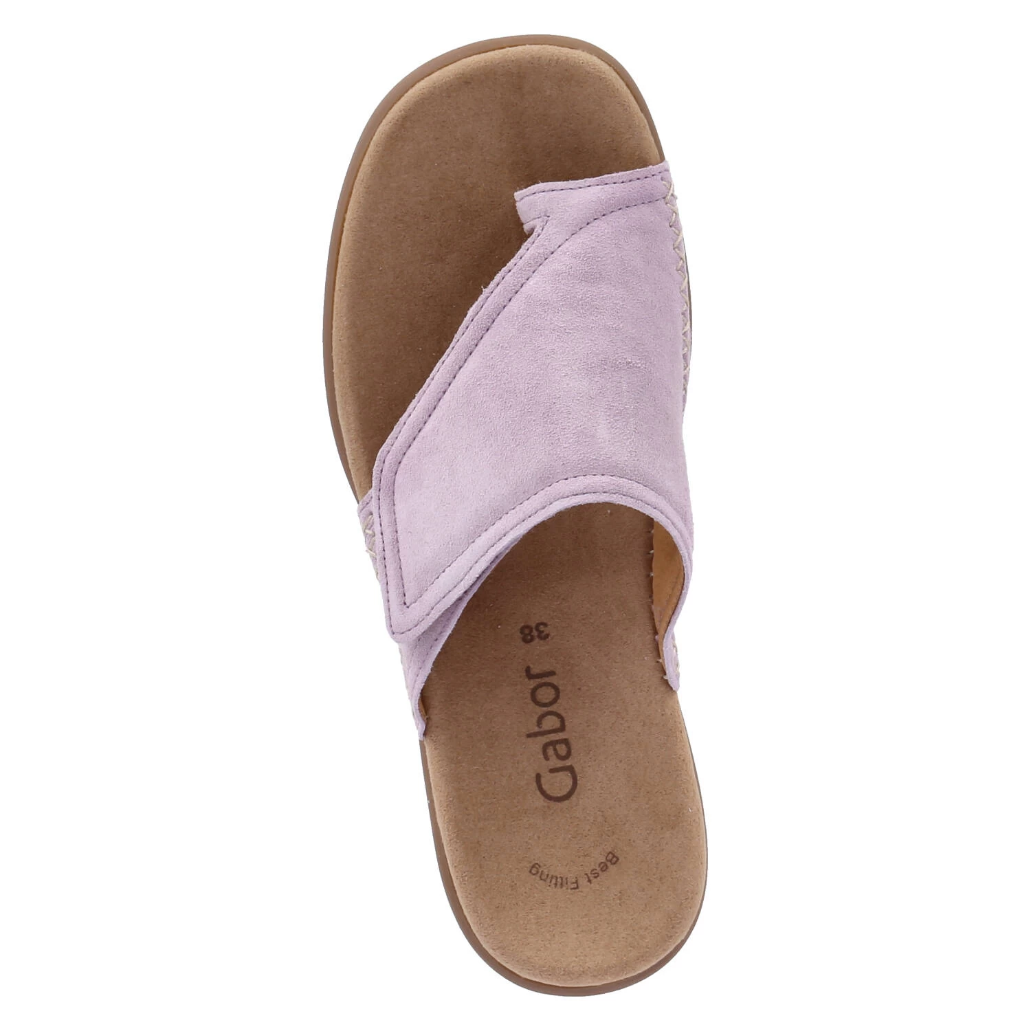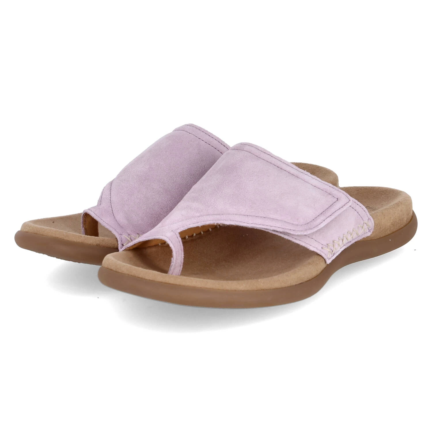 Gabor Damen Pantoletten/ Zehentrenner Violett Rauleder – Klettriemen – Ziernähte – vorgeformtes TieffuĂźbett – flexible, rutschhemmende Laufsohle – wattiertes Lederfutter