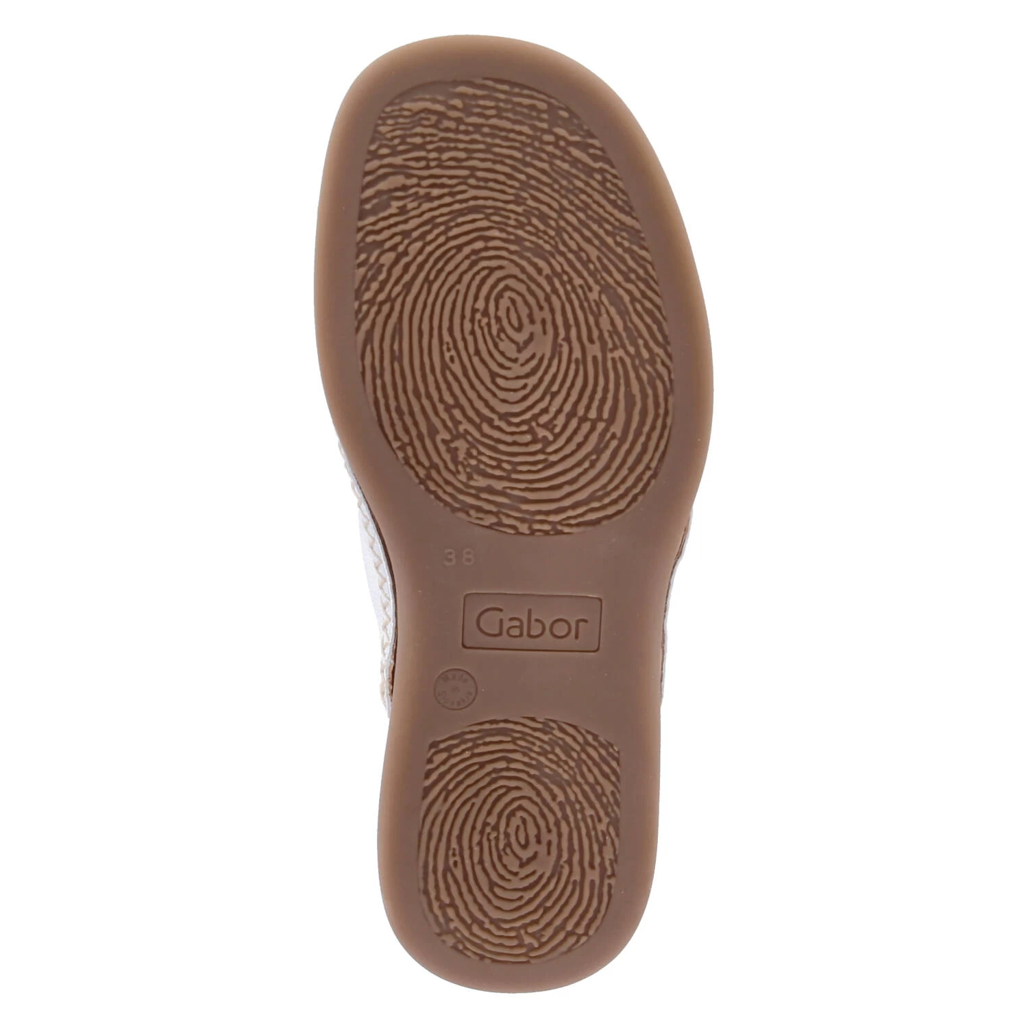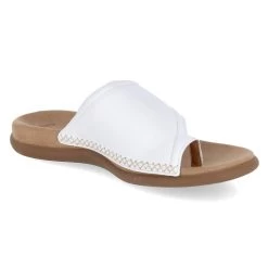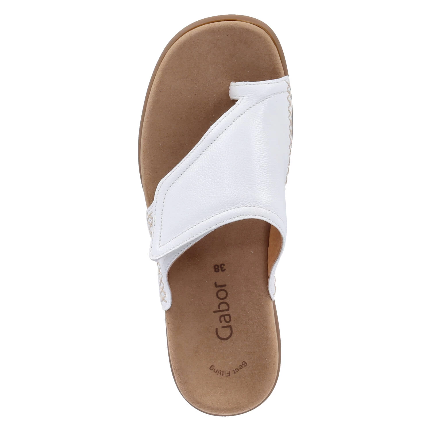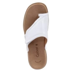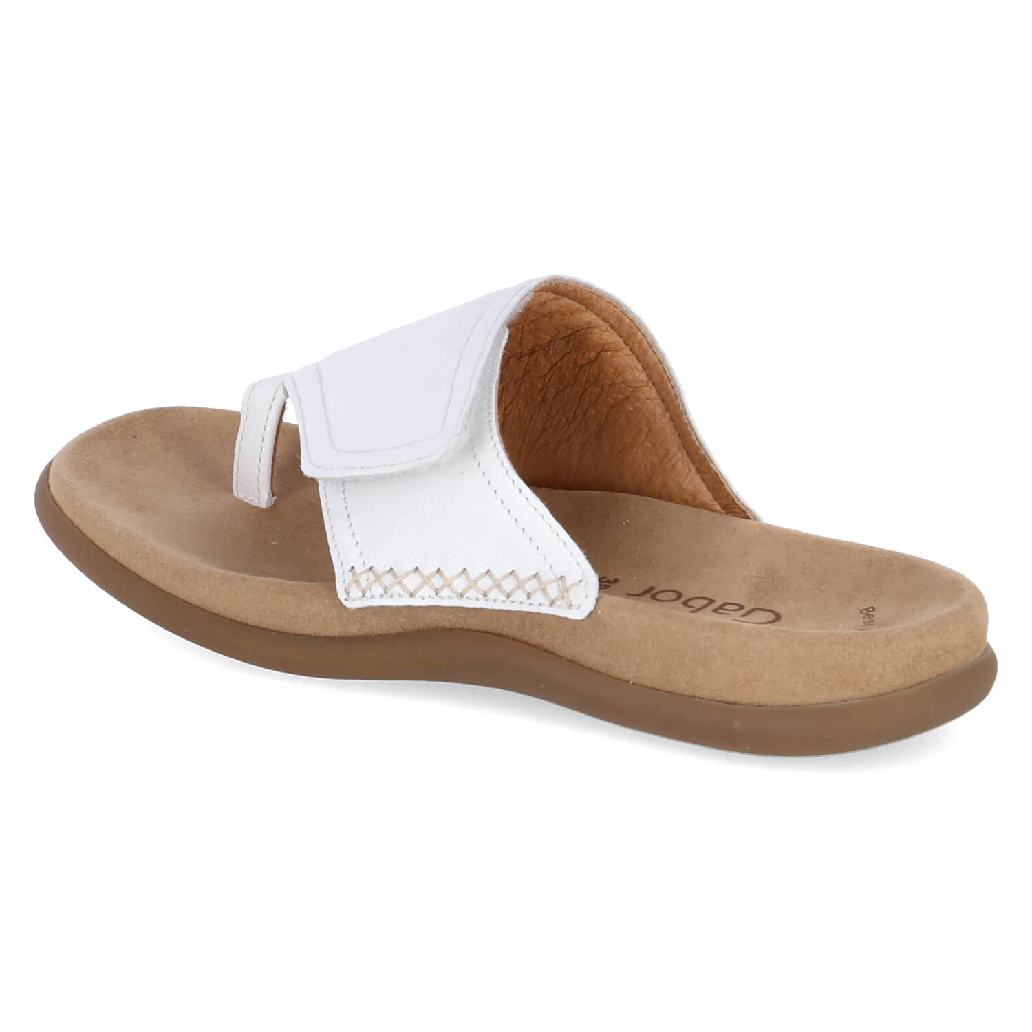 Gabor Damen Pantoletten/ Zehentrenner WeiĂź Rauleder – Klettverschlussriemen – seitliche Ziernähte – gepolstertes TieffuĂźbett – flexible, rutschhemmende Laufsohle