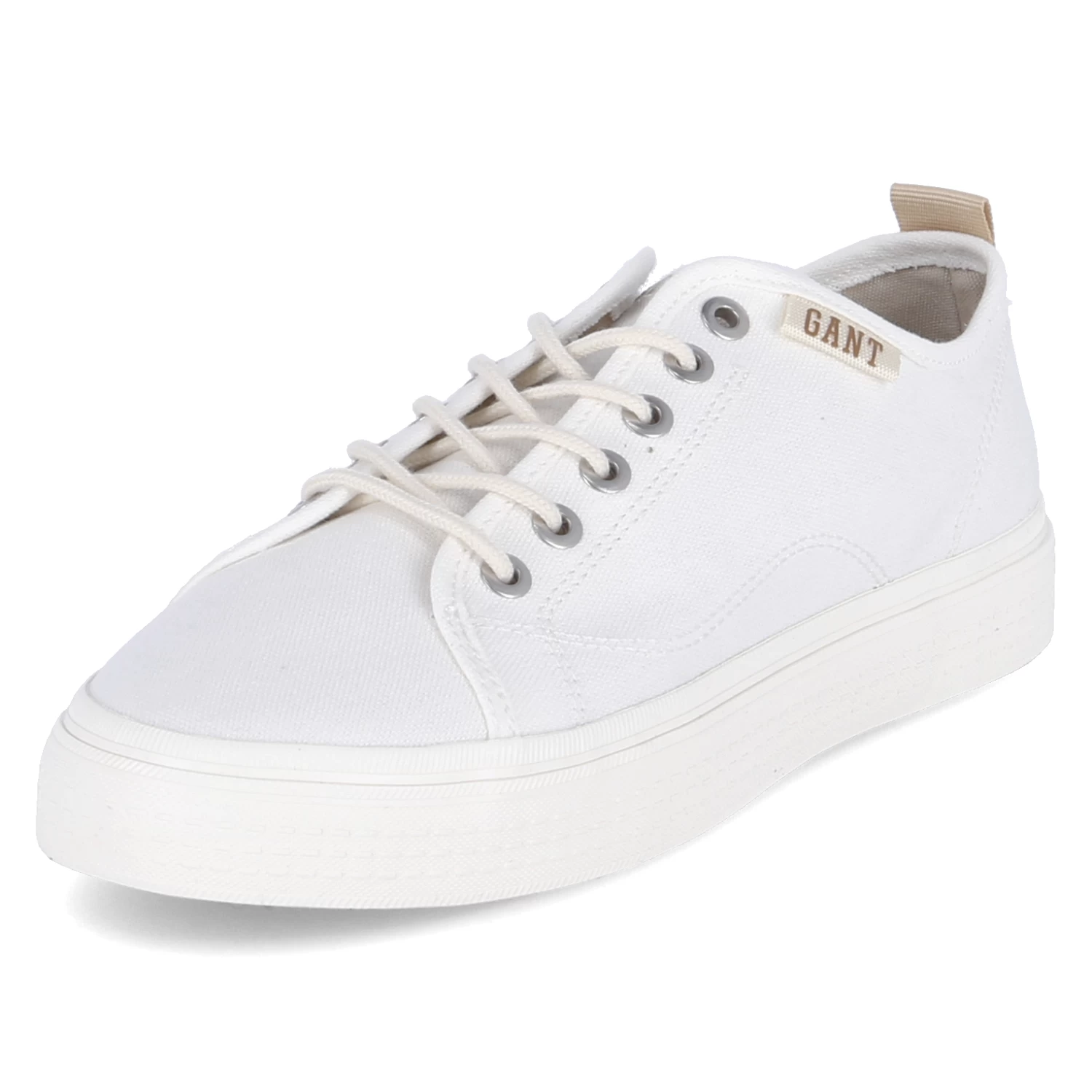Gant Damen SchnĂĽrschuhe/ sportliche Halbschuhe/ Low Sneaker CARROLY WeiĂź Canvas – klassisches Design – Anziehlasche – gelabelt – gepolstertes WechselfuĂźbett – Ziernähte – starke rutschhemmende Cupsohle