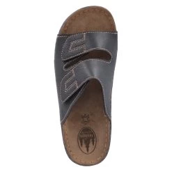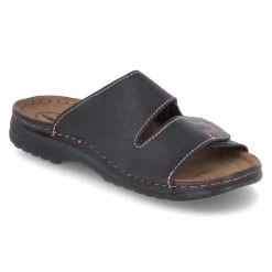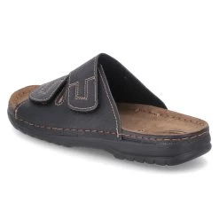 Helix Franken Schuhe Herren Pantoletten Schwarz Kunstleder – zwei Klettverschlussriemen – Ziernähte – gepolstertes TieffuĂźbett mit Lederbezug – flexible Laufsohle
