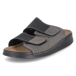 Helix Franken Schuhe Herren Pantoletten Schwarz Kunstleder – zwei Klettverschlussriemen – Ziernähte – gepolstertes TieffuĂźbett mit Lederbezug – flexible Laufsohle