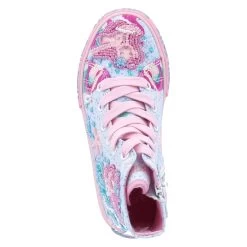 Lelli Kelly Kinder High Sneaker SIRENETA MID Blau-Bunt Textil – SchnĂĽrung und ReiĂźverschluss – Meerjungfrauenprint – Teile mit Perlen, Pailletten -verstärkter Fersenbereich – gepolsterte Decksohle – flexible Cupsohle