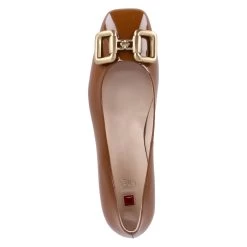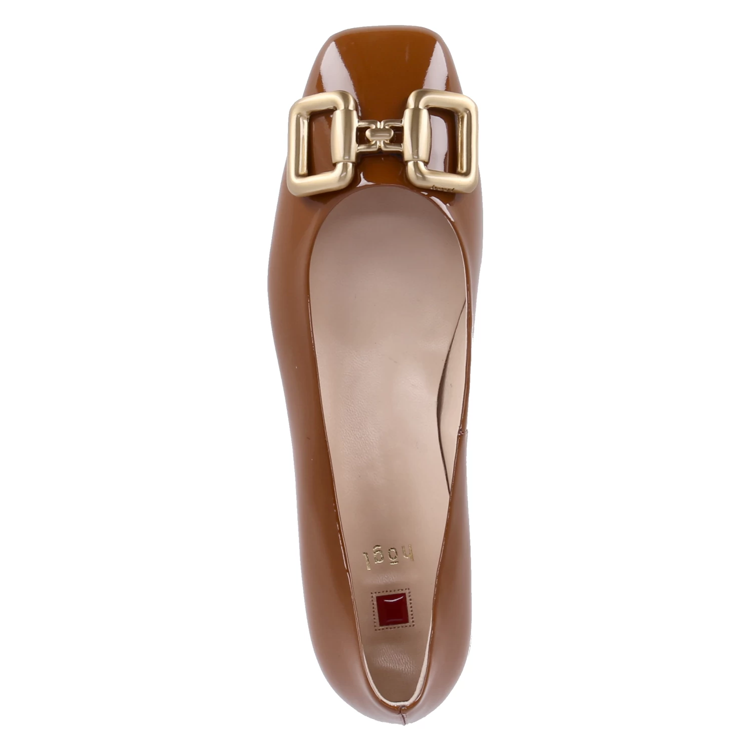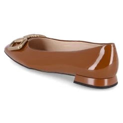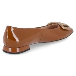 Högl Damen Ballerinas Braun Lackleder – goldglänzendes Kettenelement im Zehenbereich – leicht gepolsterte Lederdecksohle – Lederfutter – flexible, rutschhemmende Laufsohle