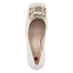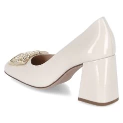 Högl Damen Pumps Beige Lackleder – zierendes Element in Goldkettenoptik vorne – hoher Blockabsatz – verstärkte Ferse – Lederfußbett und ~futter – flexible, rutschhemmende Laufsohle