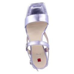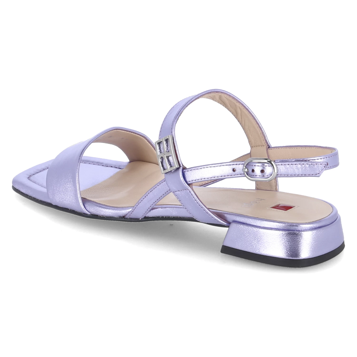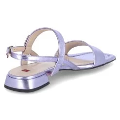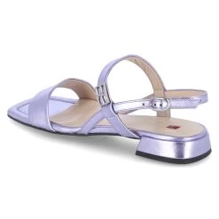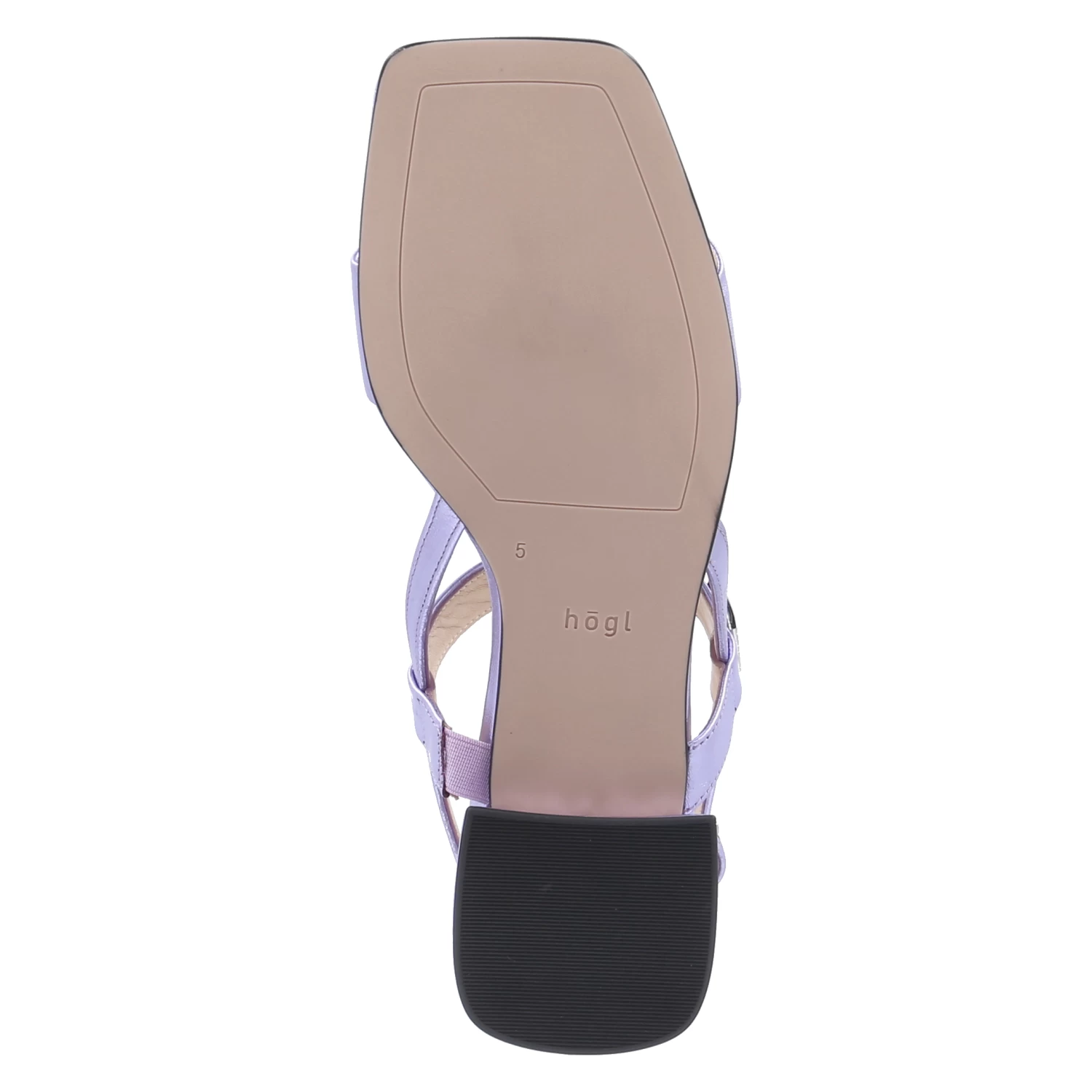 Högl Damen Sandaletten/ Sandalen Violett Glattleder – metallisch schimmernde Oberfläche – Markendetail – Schnalle mit Elastikeinsatz – Lederdecksohle – flexible, rutschhemmende Laufsohle – flacher Blockabsatz