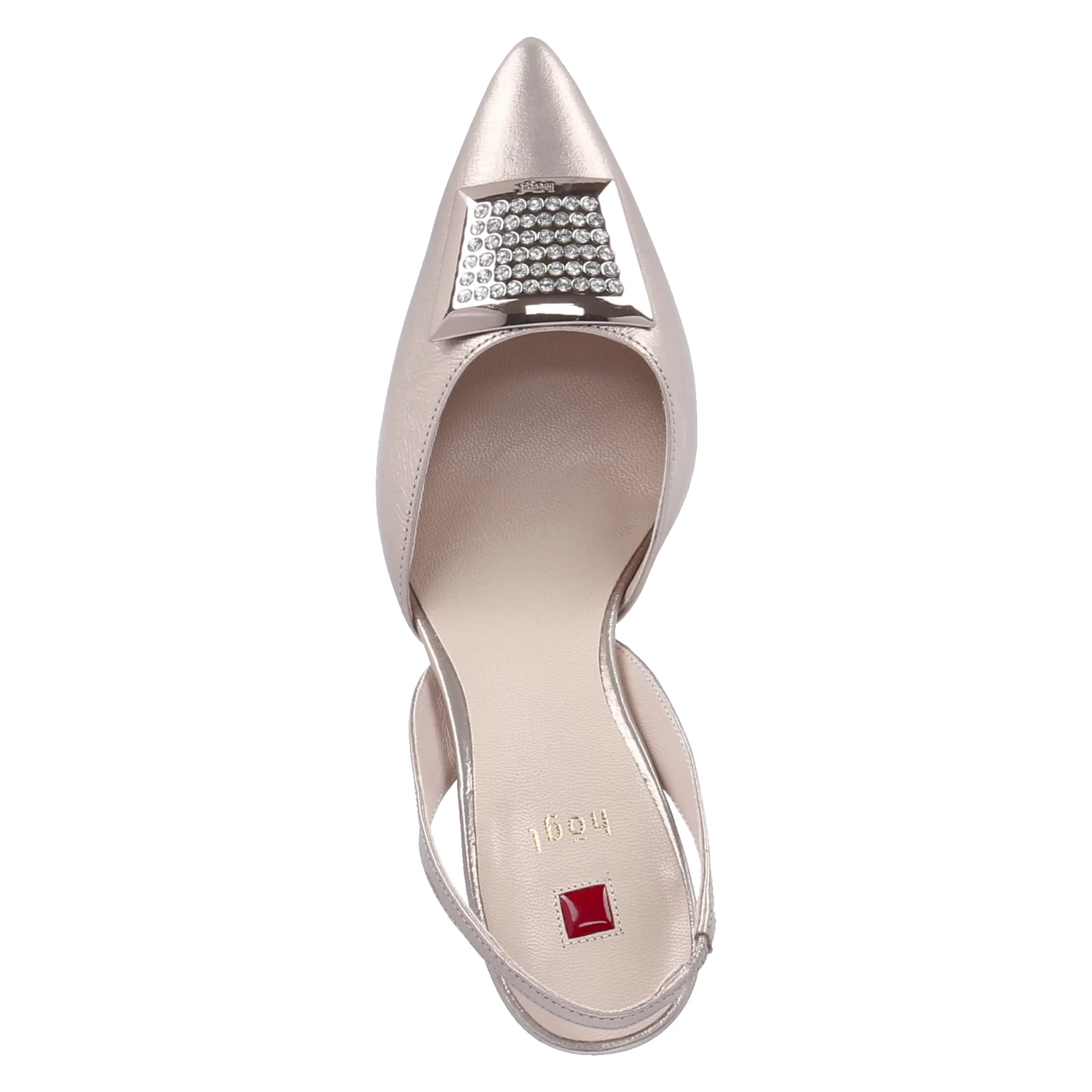 Högl Damen Pumps/ Slingpumps Bronze Glattleder – Fersenriemen mit Elastikeinsatz – angenehmes Lederfutter – leicht gepolstertes Lederdecksohle – flexible, rutschhemmende Laufsohle – ca. 8 cm hoher Sanduhr-Absatz