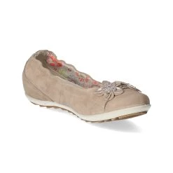 Imac Mädchen Ballerinas Beige Rauleder – hĂĽbsche Blumenmotive – verstärkter Fersenbereich – leichtes Textilfutter – gepolsterte Wechseldecksohle – sehr flexible, rutschhemmende Profilsohle