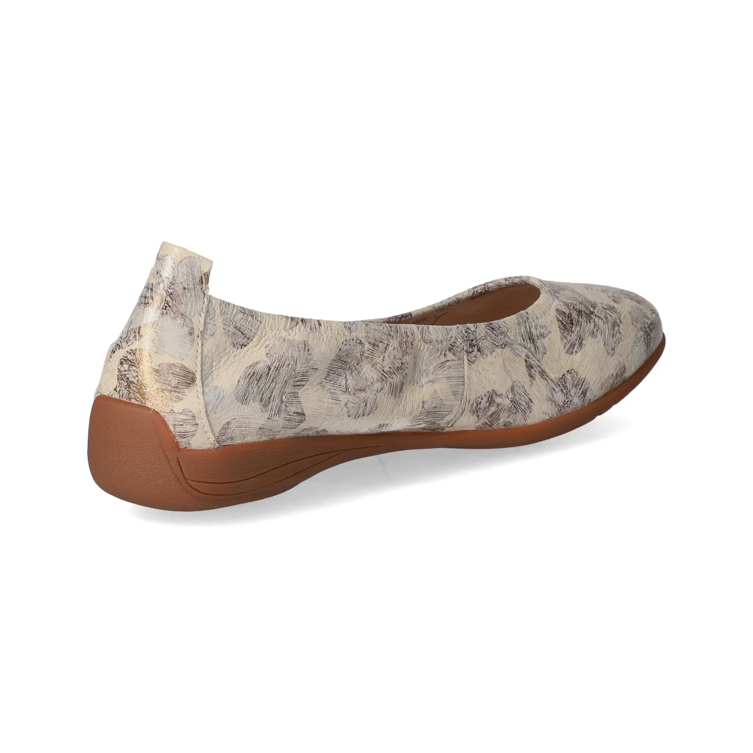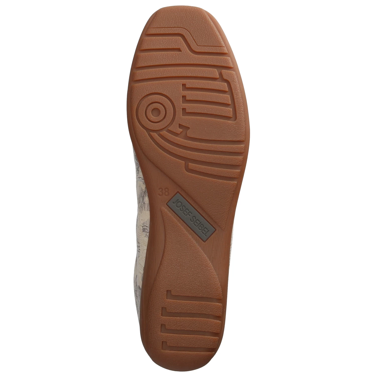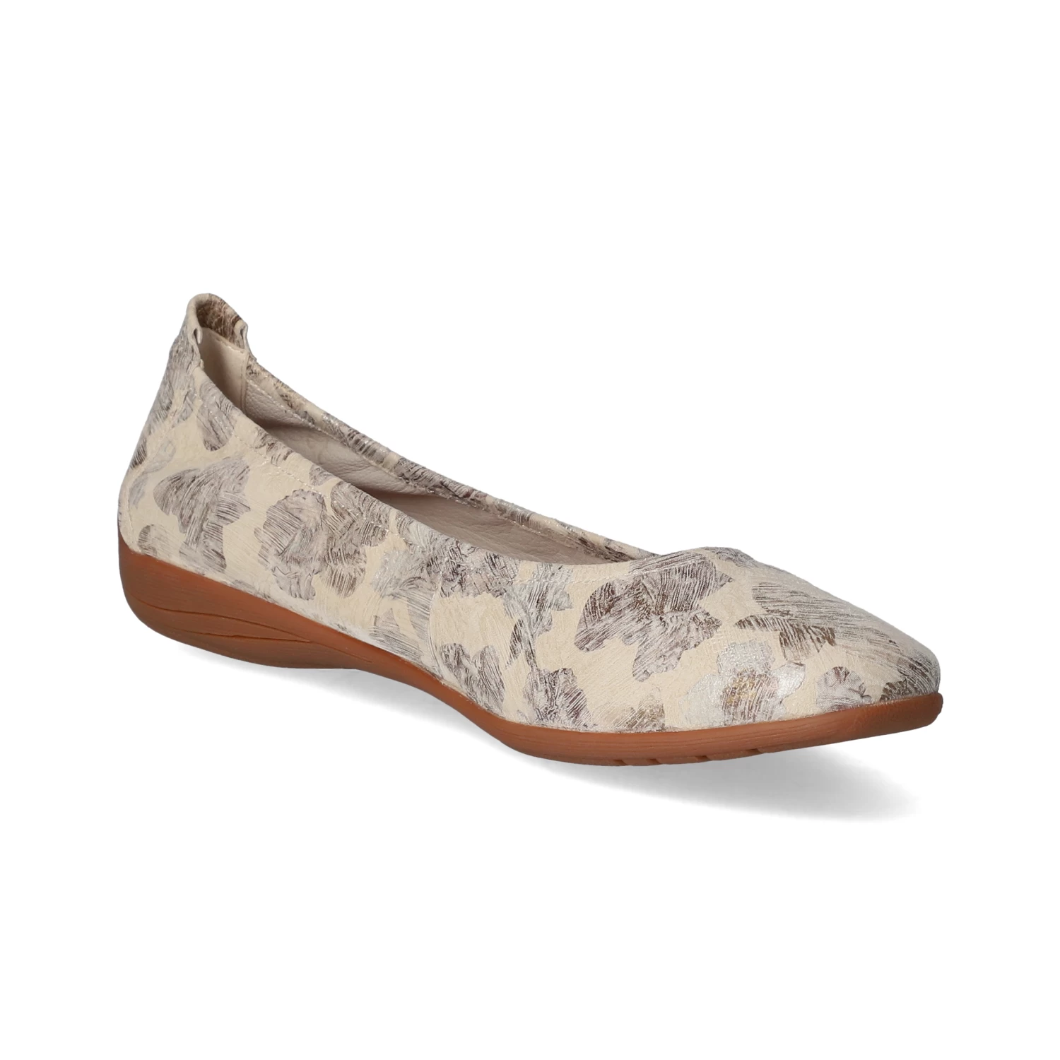 Josef Seibel Damen Ballerinas FENJA 01 Beige Leder – glänzende Oberfläche – florales Muster – verstärkte Ferse – Anziehlasche – angenehmes Leder-Textilfutter – gepolsterte Lederdecksohle – flexible, rutschhemmende Laufsohle