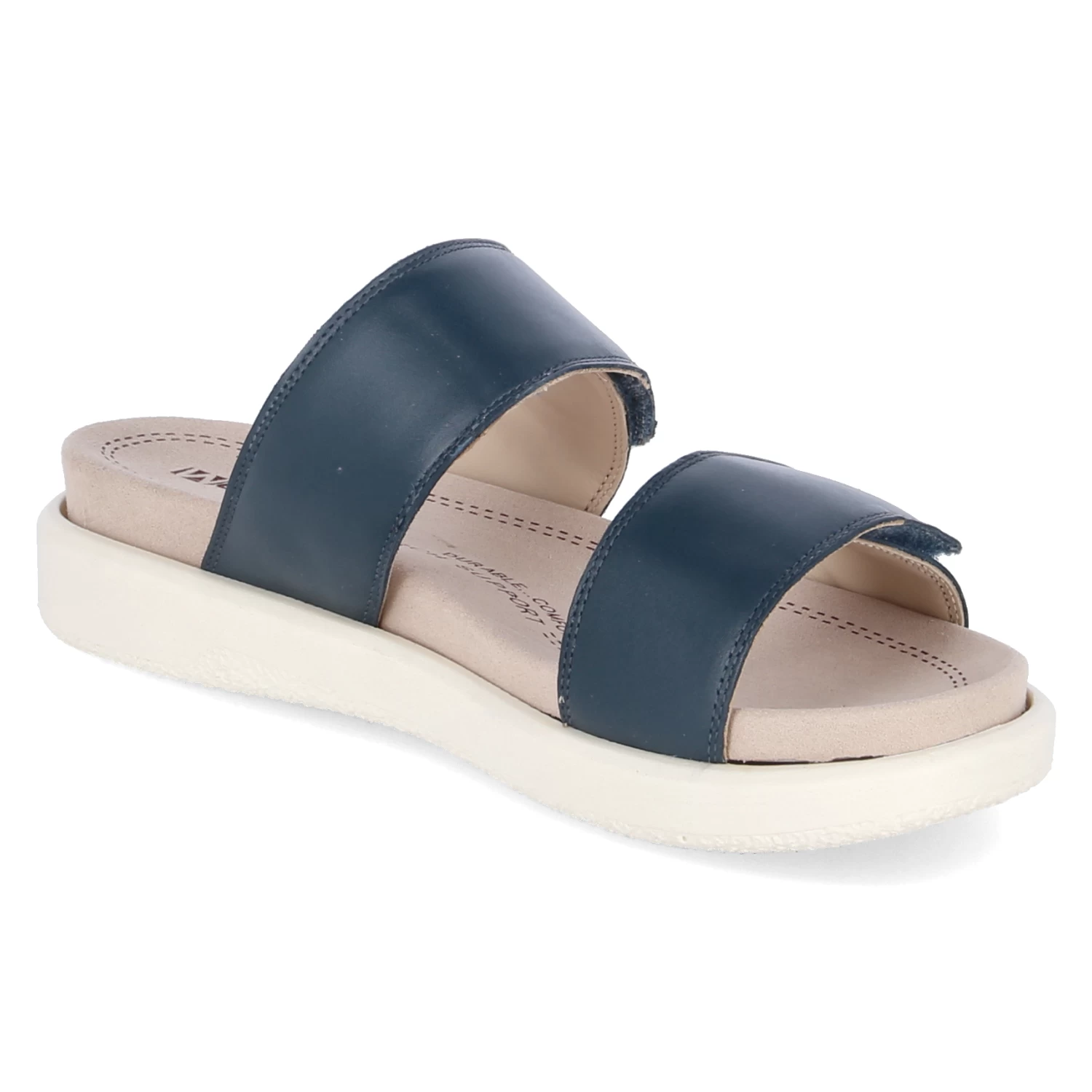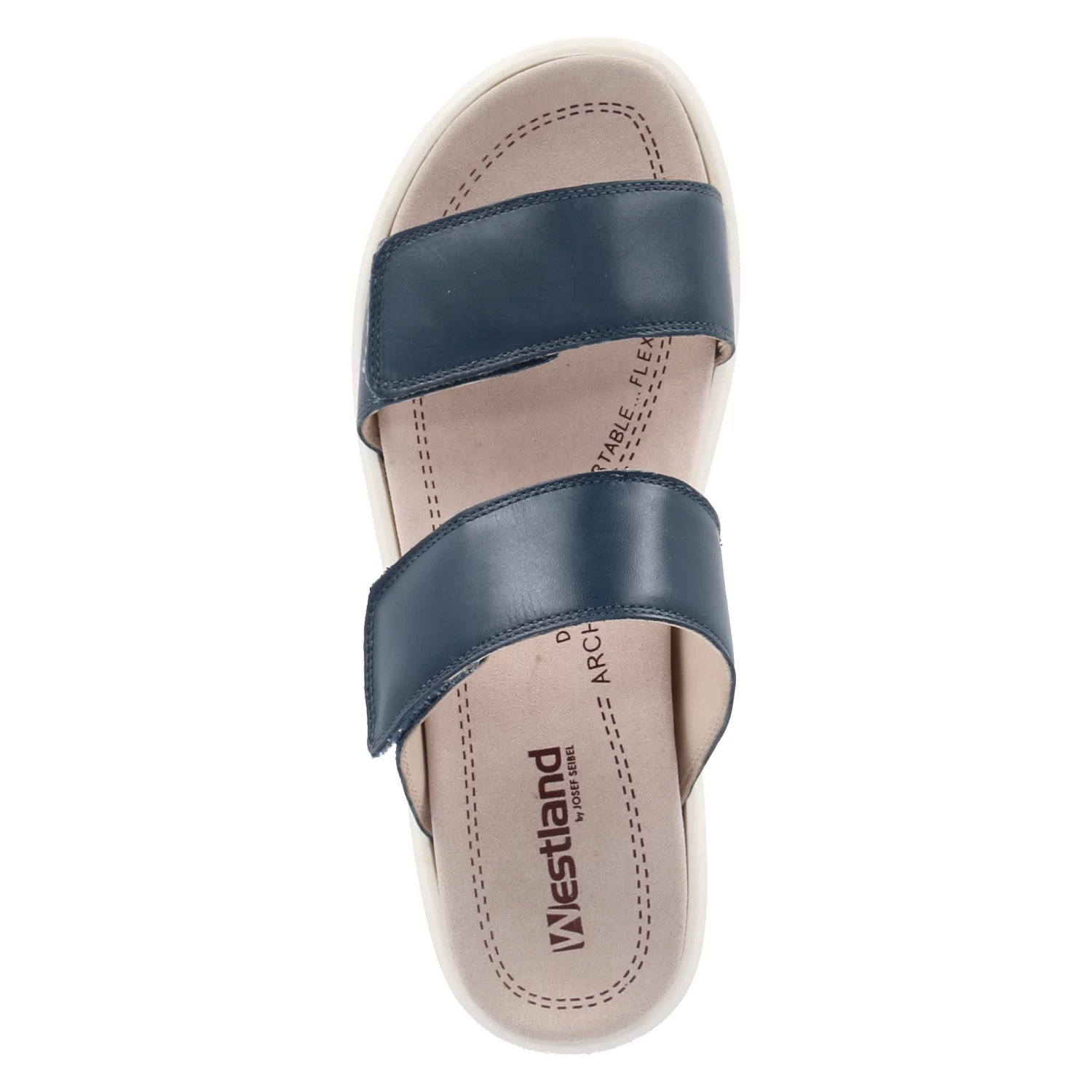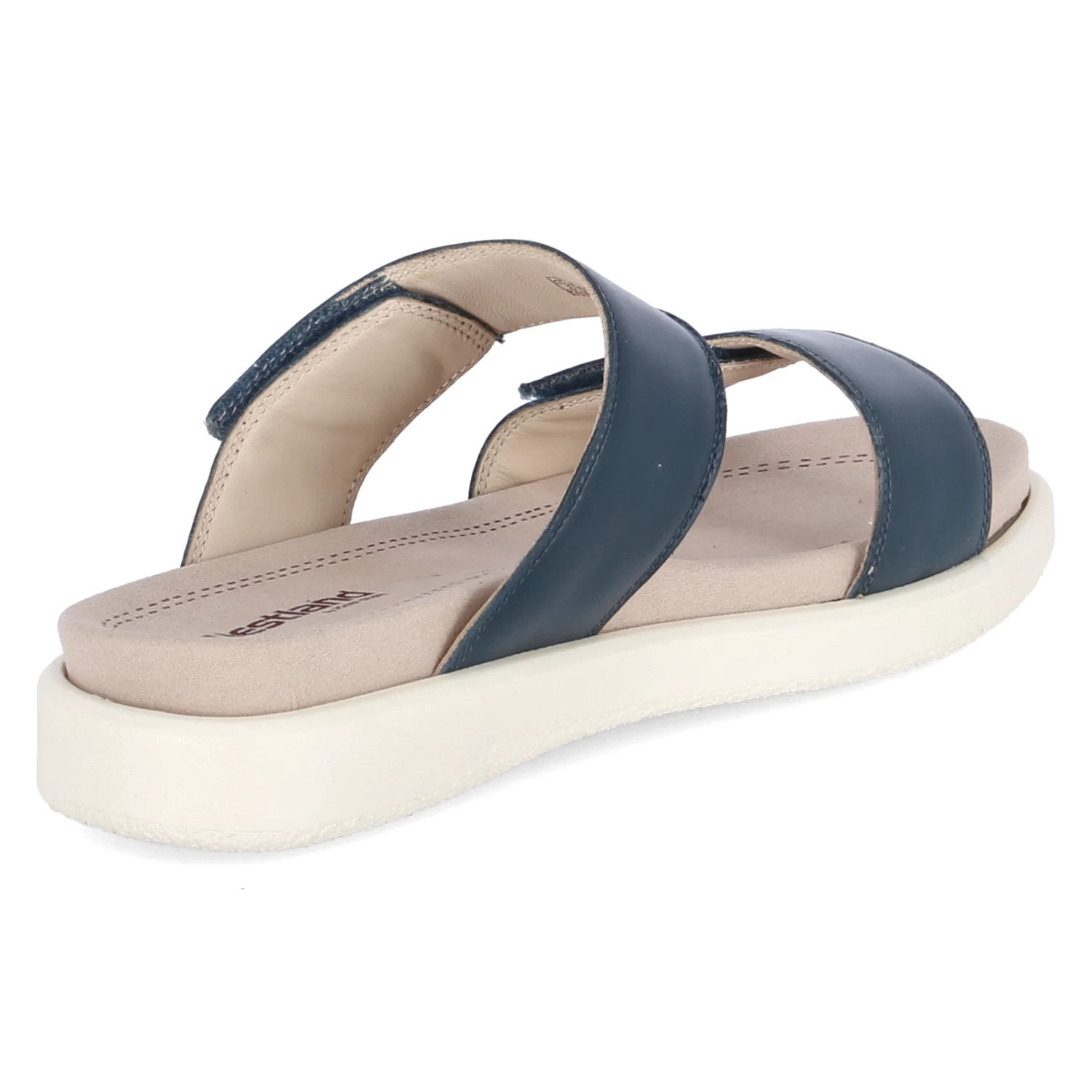Westland Damen Pantoletten ALBI 03 Blau Glattleder – zwei breite Klettverschlussriemen – leicht vorgeformtes, herausnehmbares FuĂźbett – flexible Laufsohle