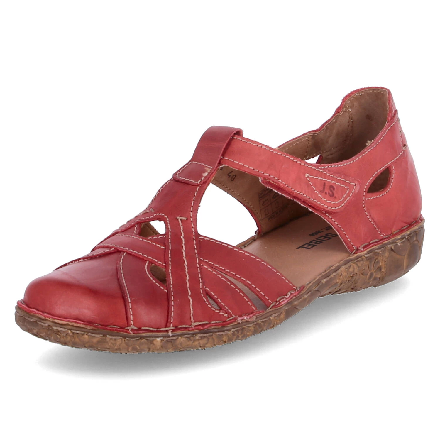 Josef Seibel Damen Sandalen ROSALIE 29 Rot Glattleder – geschlossener Zehenbereich mit Flechtelement – T-Steg mit Klettverschlussriemen – gepolsterte Lederdecksohle – flexible Laufsohle – Lederfutter – geringes Gewicht