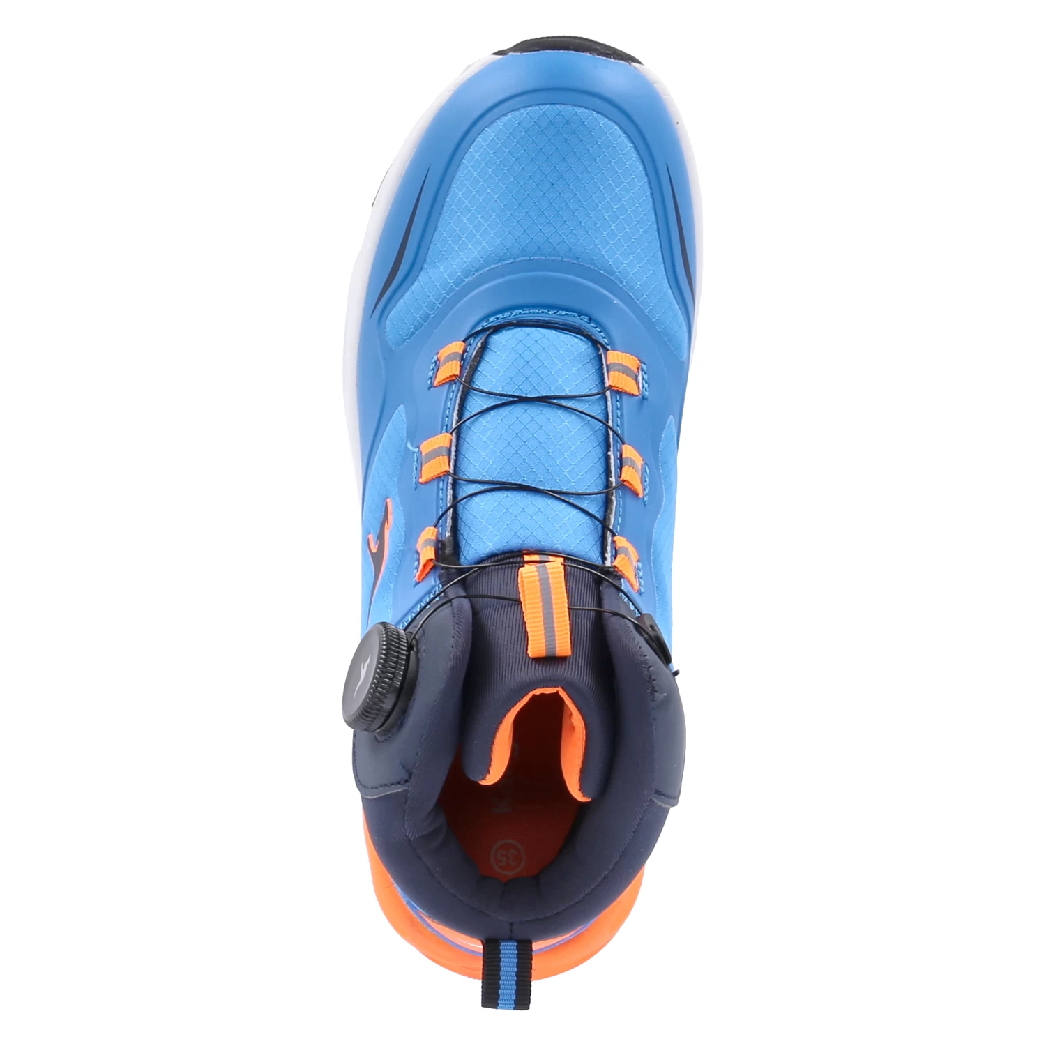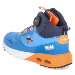 Kangaroos Kinder Outdoorschuhe/ High Sneaker KX-RAPTOR HI XT Blau Textil-Synthetik-Mix – orange Highlights – Reflektorelemente – wasserfest – geringes Gewicht – verstärkter Zehen- und Fersenbereich – gepolsterter Einstieg – Drehverschluss – rutschhemmende Profilsohle