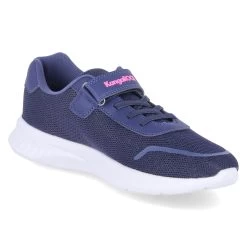 Kangaroos Mädchen Laufschuhe/ Low Sneaker KL-TWINK EV Blau Textil-Synthetik-Mix – praktischer Klettverschluss – Elastikband in SchnĂĽroptik ĂĽber Spann – Logo an der Seite – pinke Akzente – verstärkte Fersen- und Zehenbereich – gepolsterter Einstieg – gepolsterte Decksohle – flexible Laufsohle mit leichtem Profil