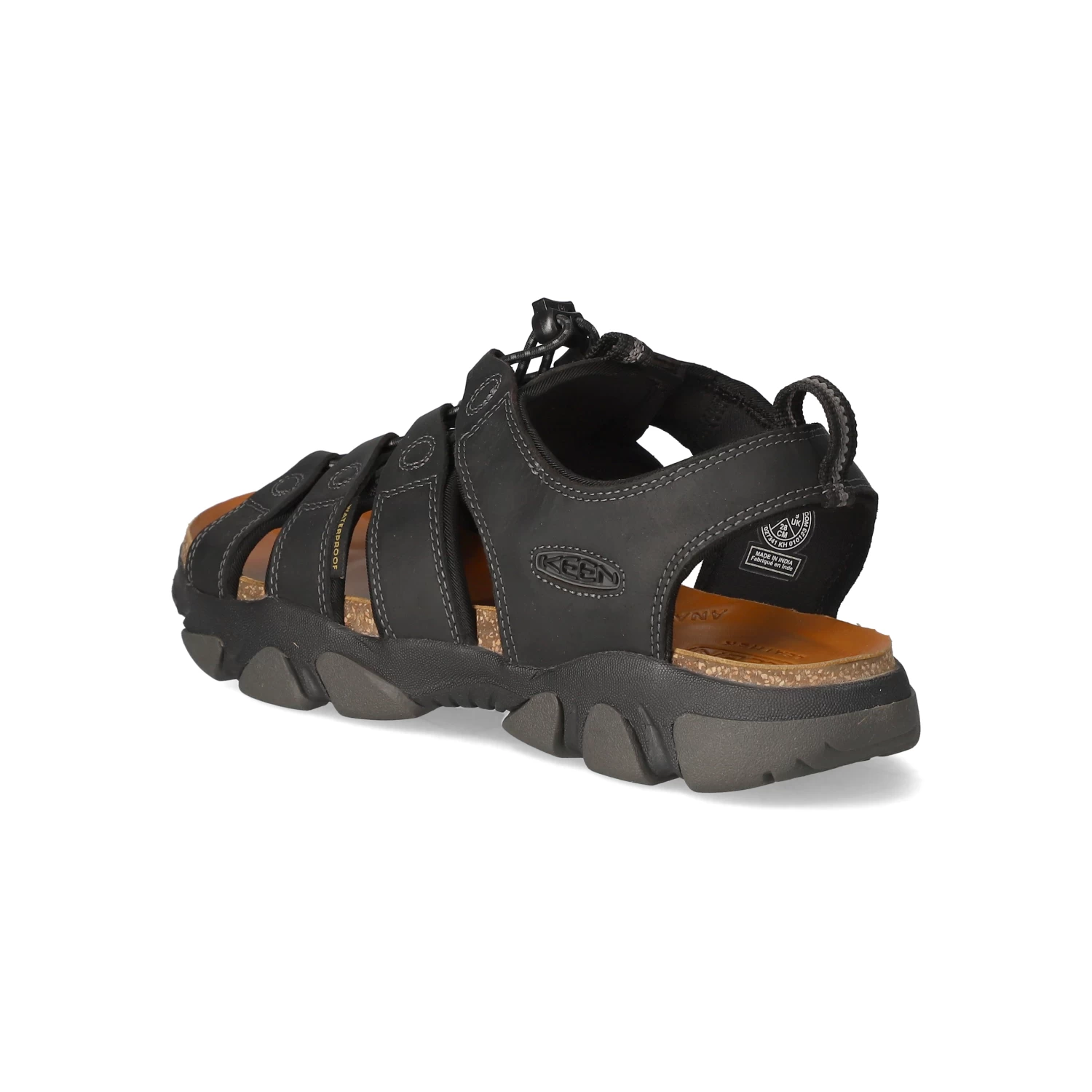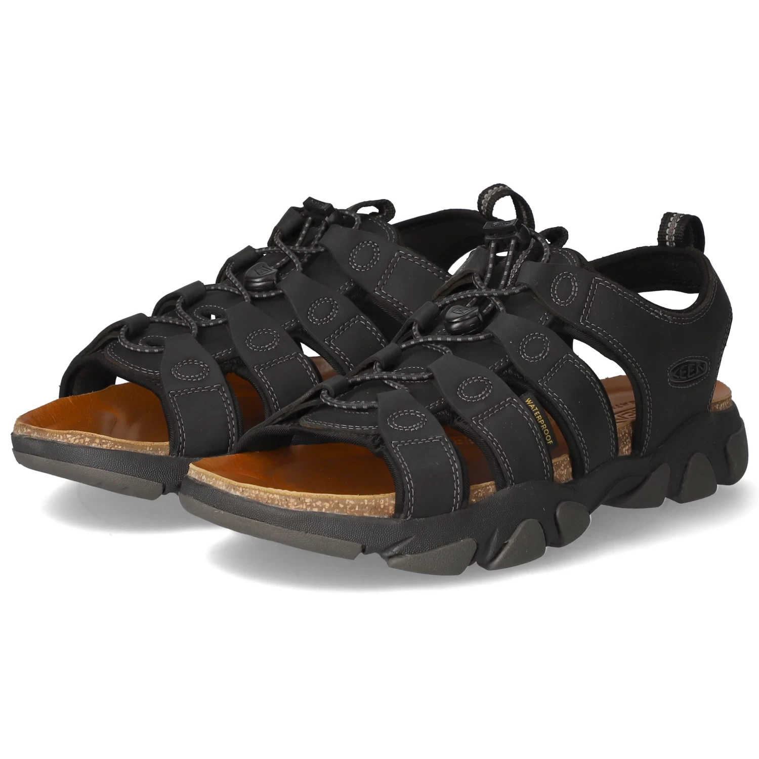 Keen Herren Sandalen DAYTONA II Schwarz Leder-Textil-Mix – modische Ziernähte – Schnellverschluss – leichtes Textilfutter – Anziehlaschen – vorgeformtes TieffuĂźbett – flexible, rutschhemmende Profilsohle