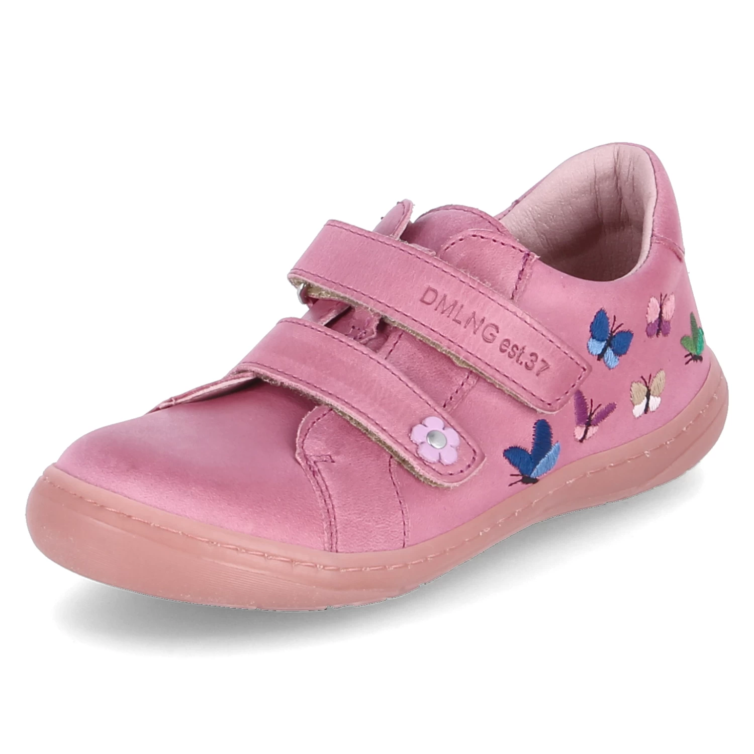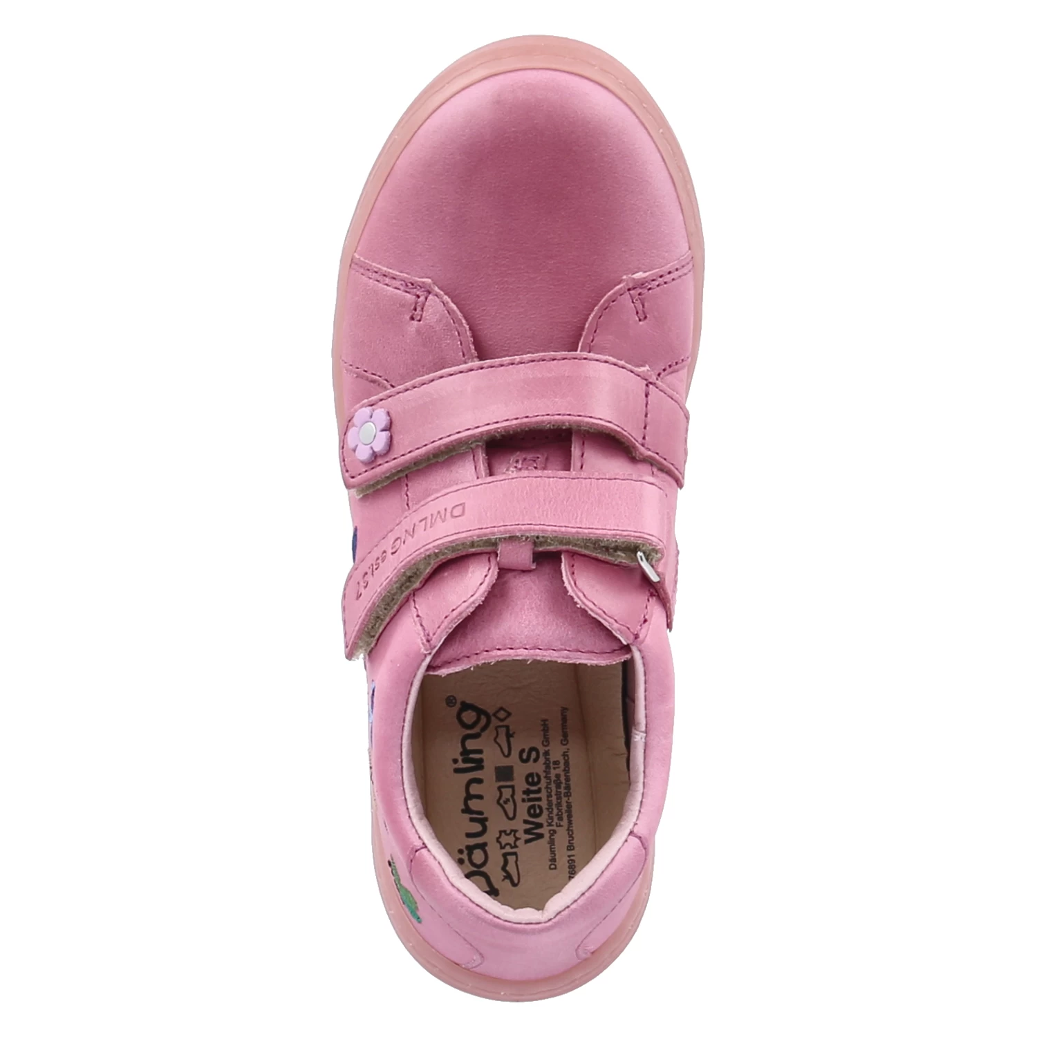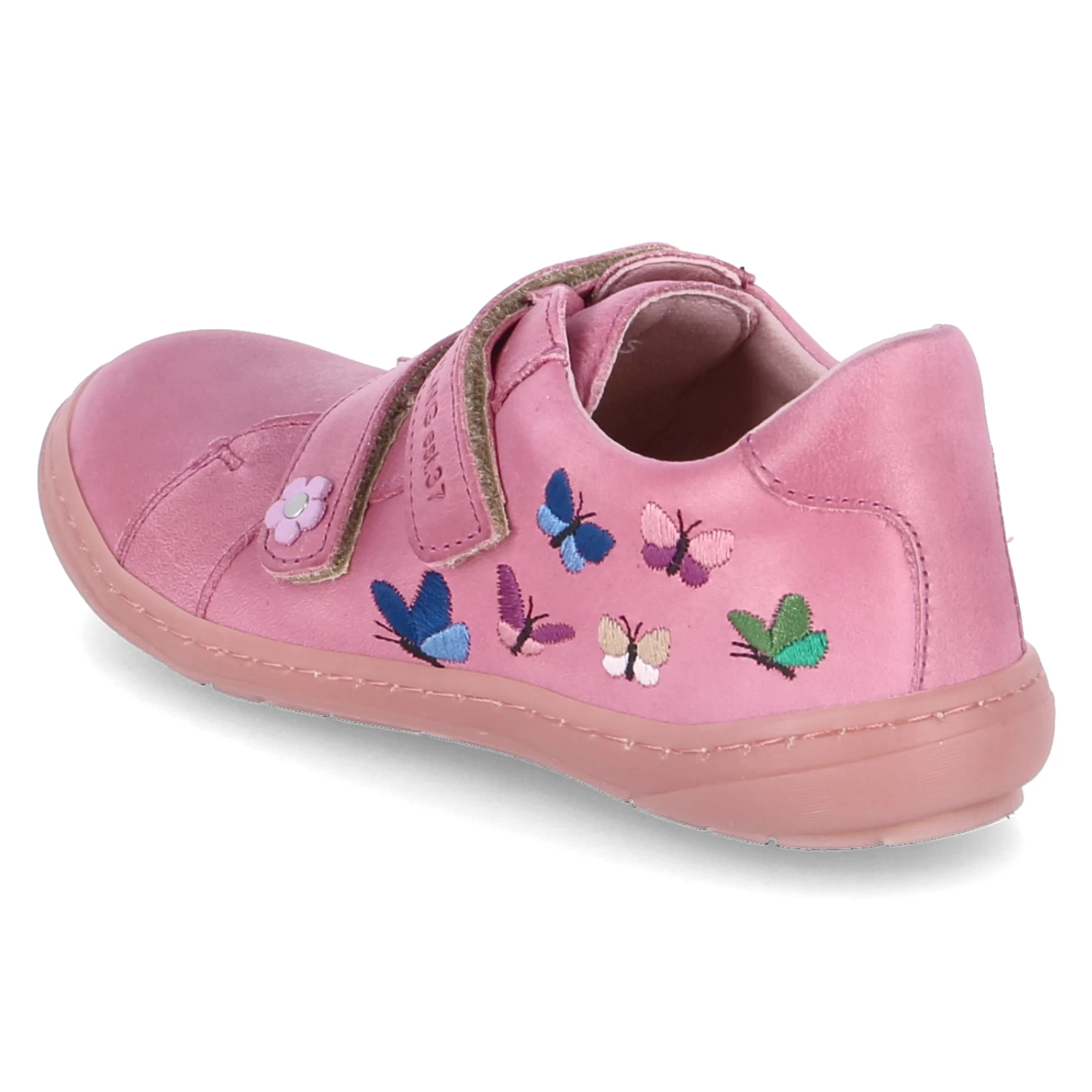 Däumling Kinder Klettschuhe/ Low Sneaker MUNA Rosa Glattleder – zwei Klettriemen – gepolsterter Einstieg – seitlich aufgestickte Schmetterlinge – Ziernähte – Markendetails – verstärkter Fersenbereich – Funtionsfutter – herausnehmbare Decksohle – flexible, rutschhemmende Cupsohle