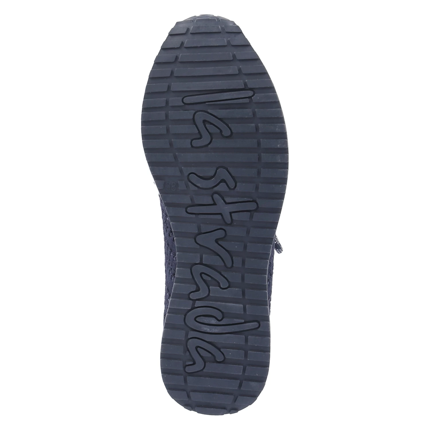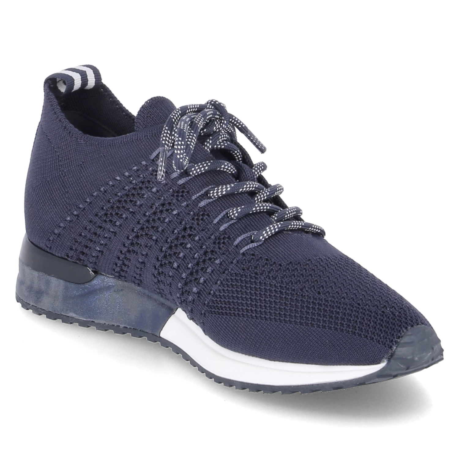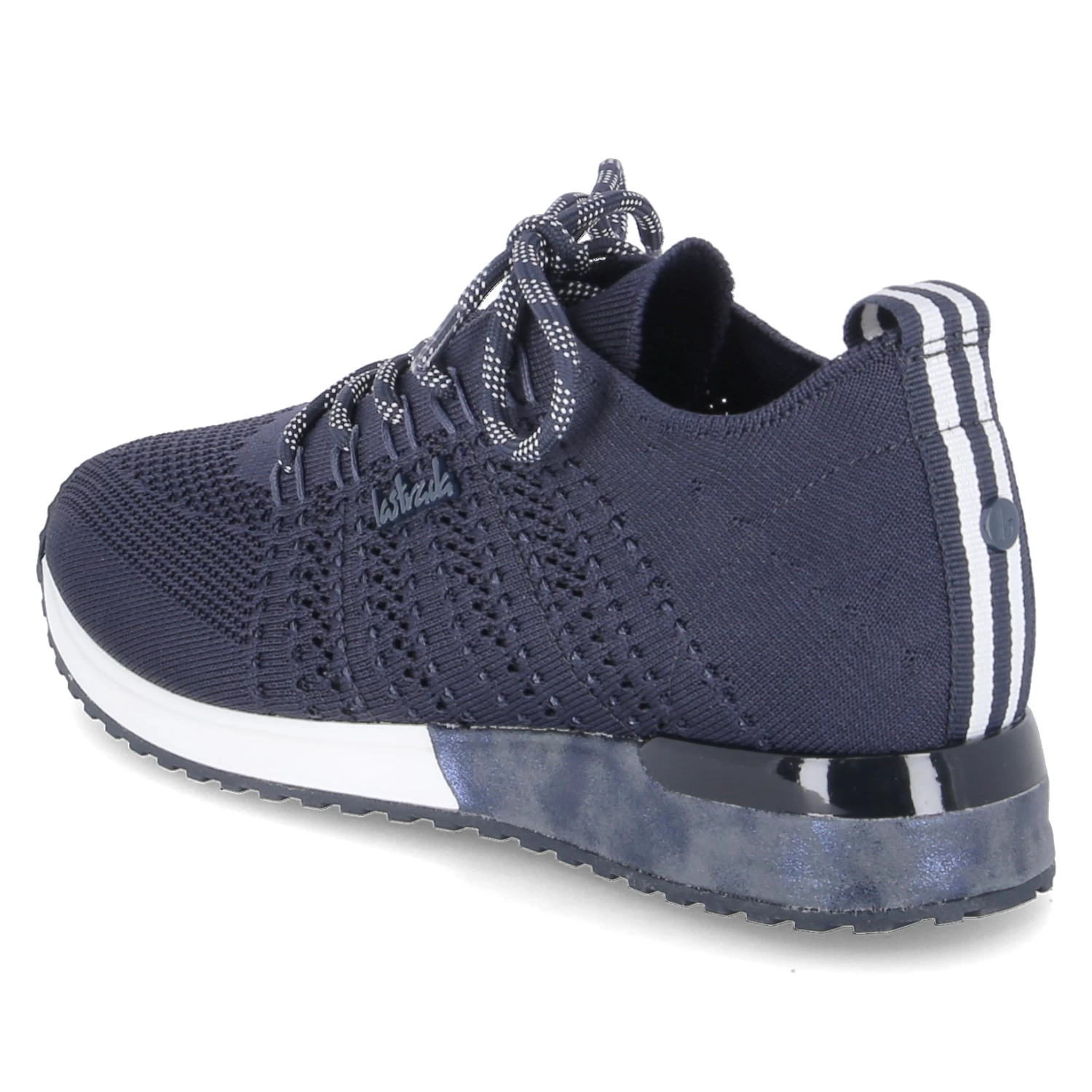 La Strada Damen Halbschuhe Blau Textil – sportliches Design – SchnĂĽrung – Anziehlasche – verstärkter Zehen- und Fersenbereich – luftiges Textilobermaterial – flexible, rutschhemmende Profilsohle