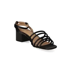 La Strada Damen Sandaletten/ Riemchensandaletten Schwarz Textil – Knöchelriemen mit Dornverschluss – gepolsterte Lederdecksohle – stabiler Blockabsatz