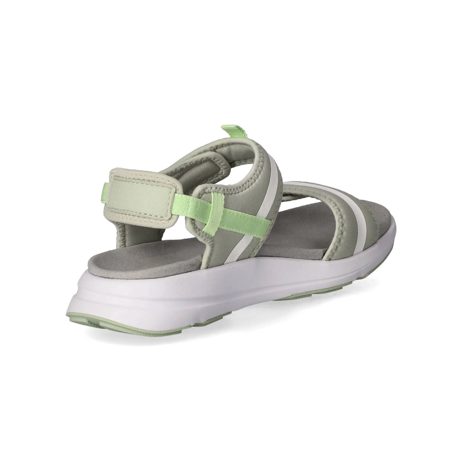 Legero Damen Sandalen LIBERTY Grün Textil – Anziehlasche – weiße Akzente – zwei Klettverschlussriemen – neoprenähnliches Futter – leicht gepolsterte, vorgeformte Decksohle – flexible, rutschhemmende Laufsohle