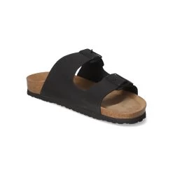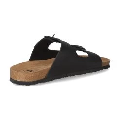Lico Herren Pantoletten ALVARO Schwarz Glattleder – Riemen mit Schnalle und Dornverschluss – gepolstertes Leder-TieffuĂźbett – rutschhemmende Profilsohle