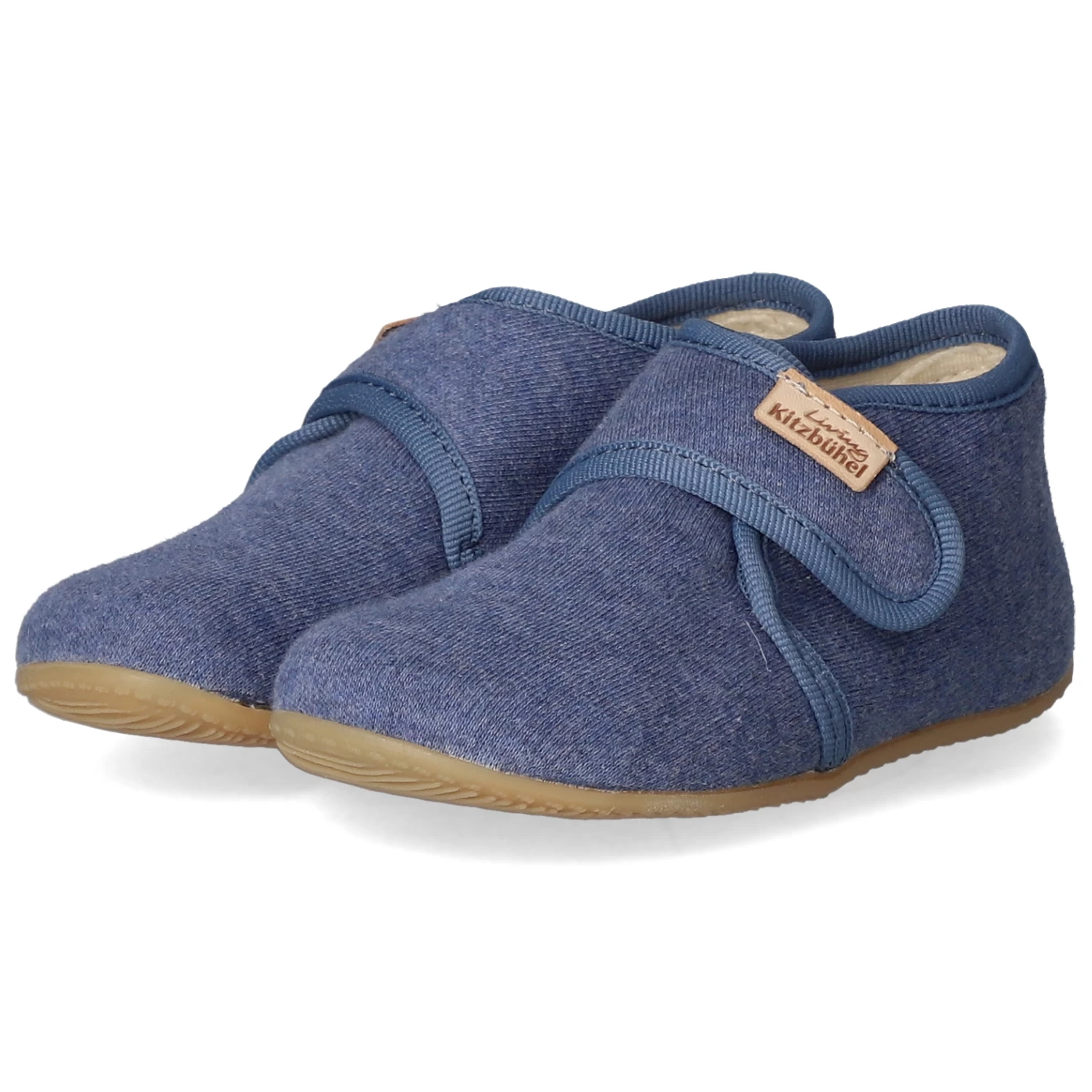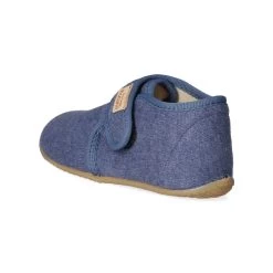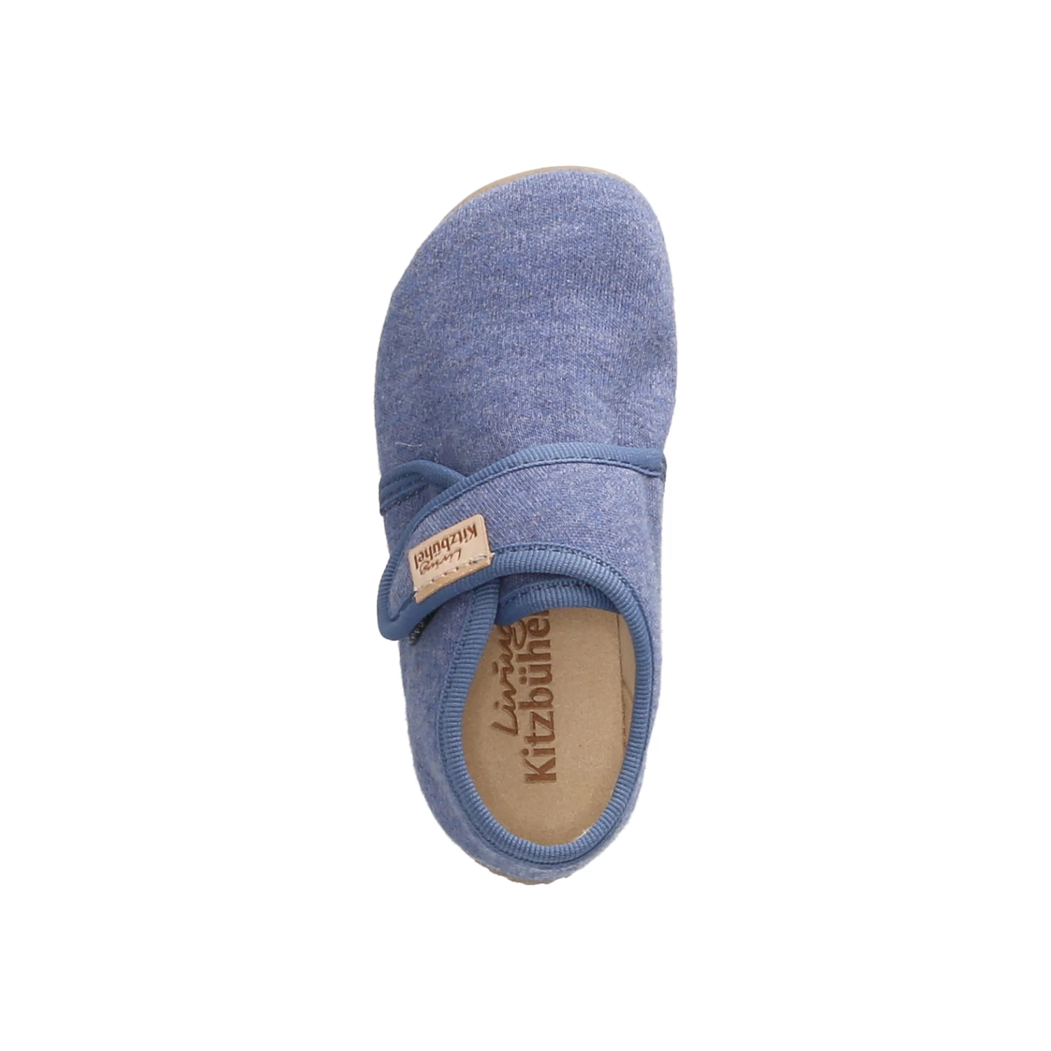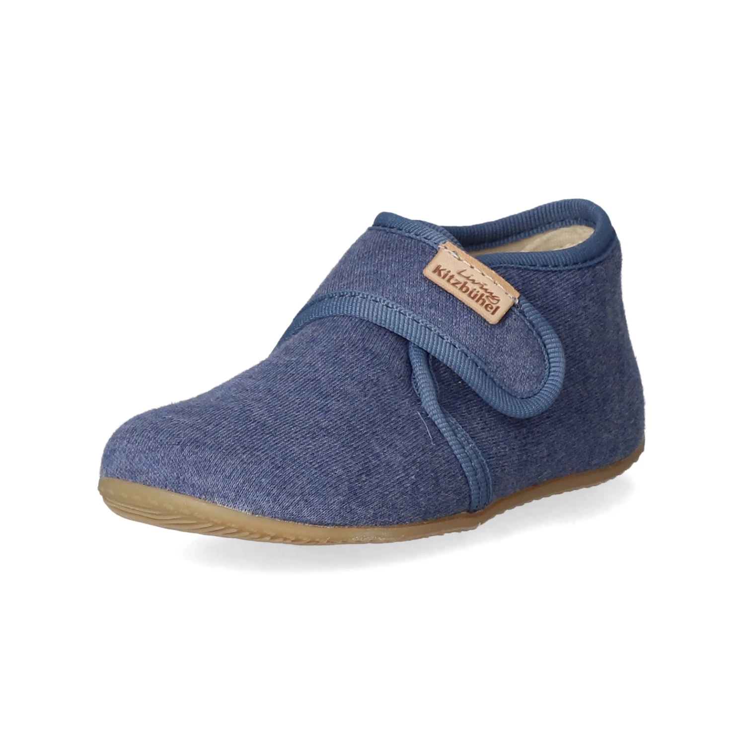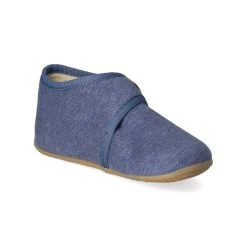 Living Kitzbühel Kinder Hausschuhe Blau Textil – dezente Markendetails – Klettverschluss – verstärkter Fersenbereich – leichtes Textilfutter – gepolsterte Decksohle – sehr flexible, rutschhemmende Profilsohle