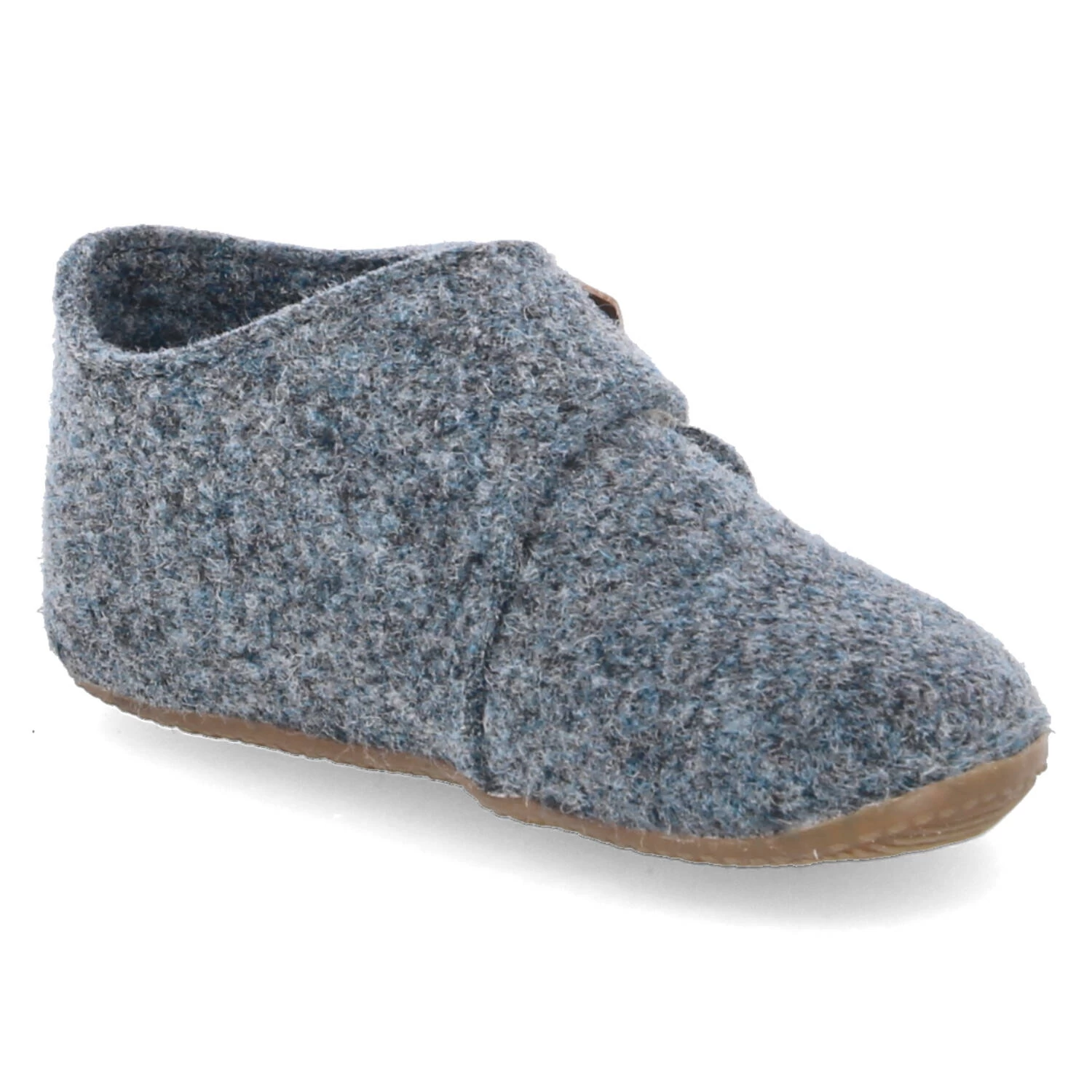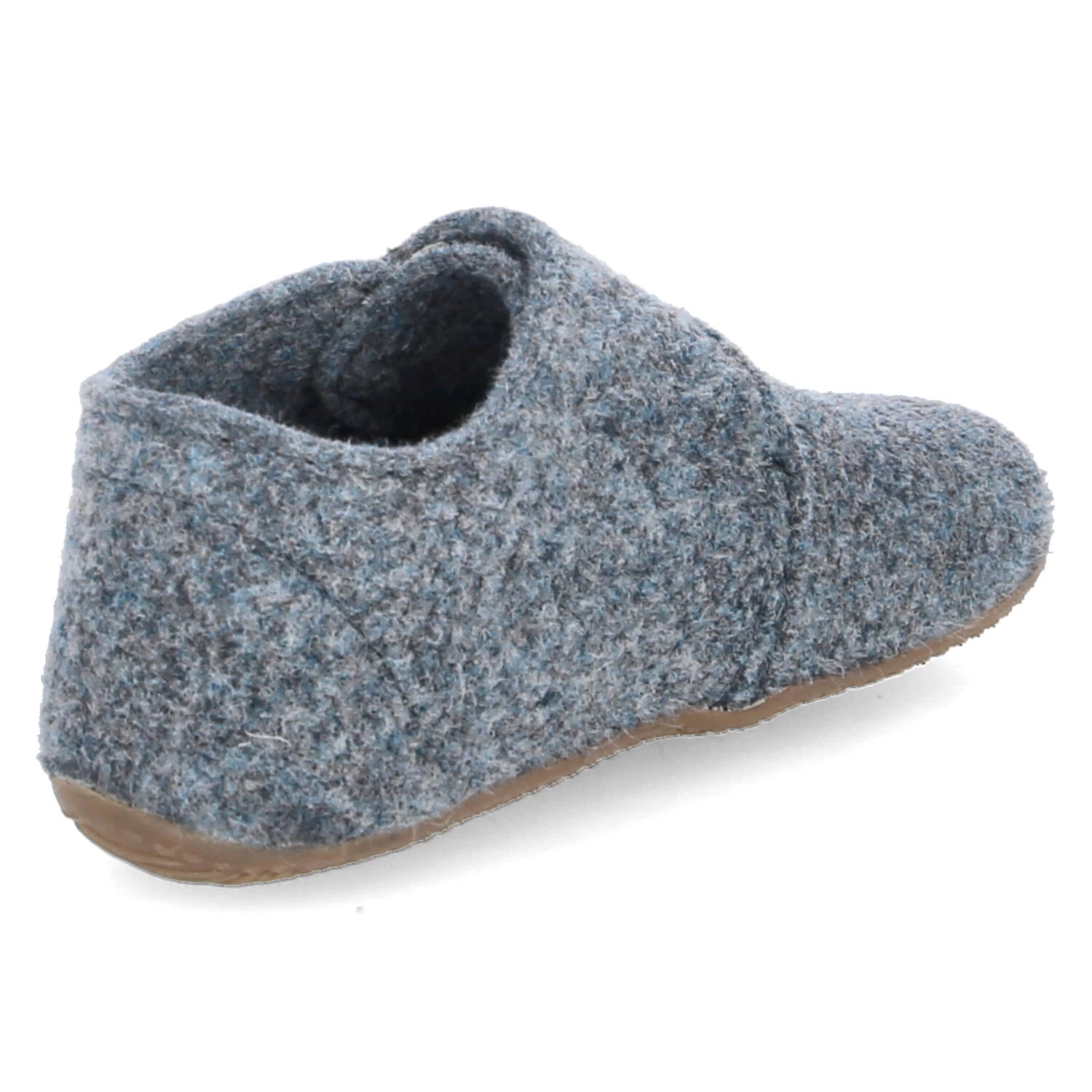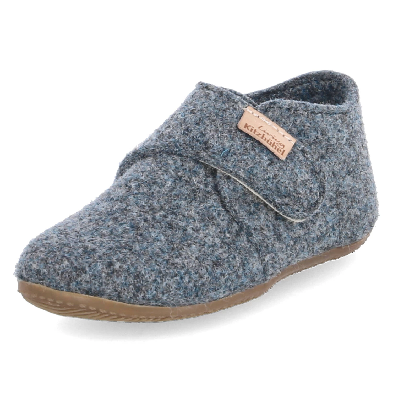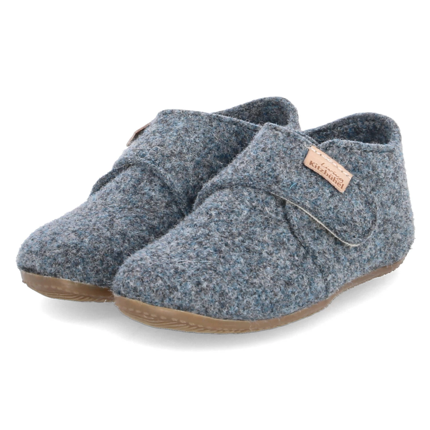 Living Kitzbühel Kinder Hausschuhe Grau Filz – Klettverschluss – Textilfutter – dünne, flexible, rutschhemmende Laufsohle