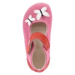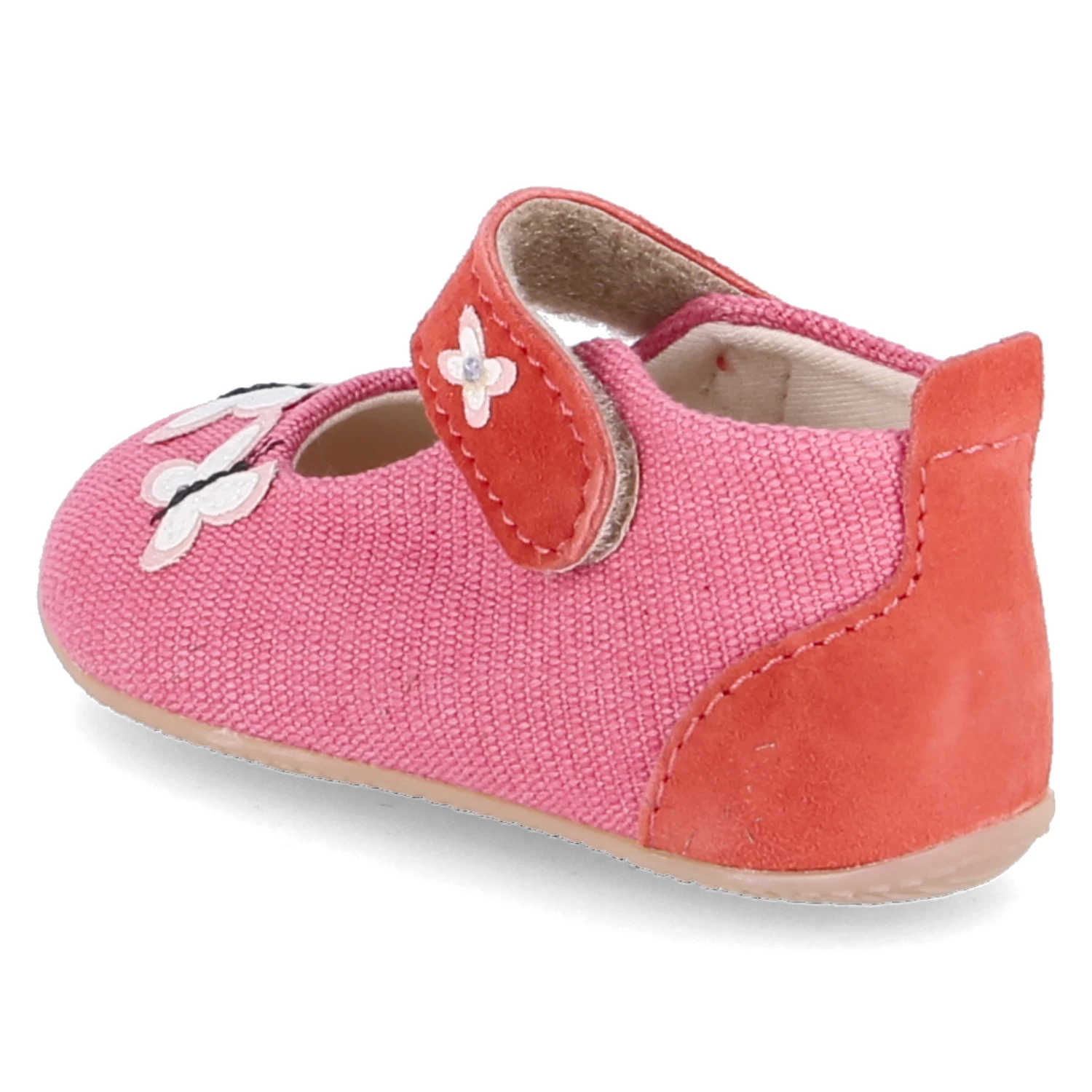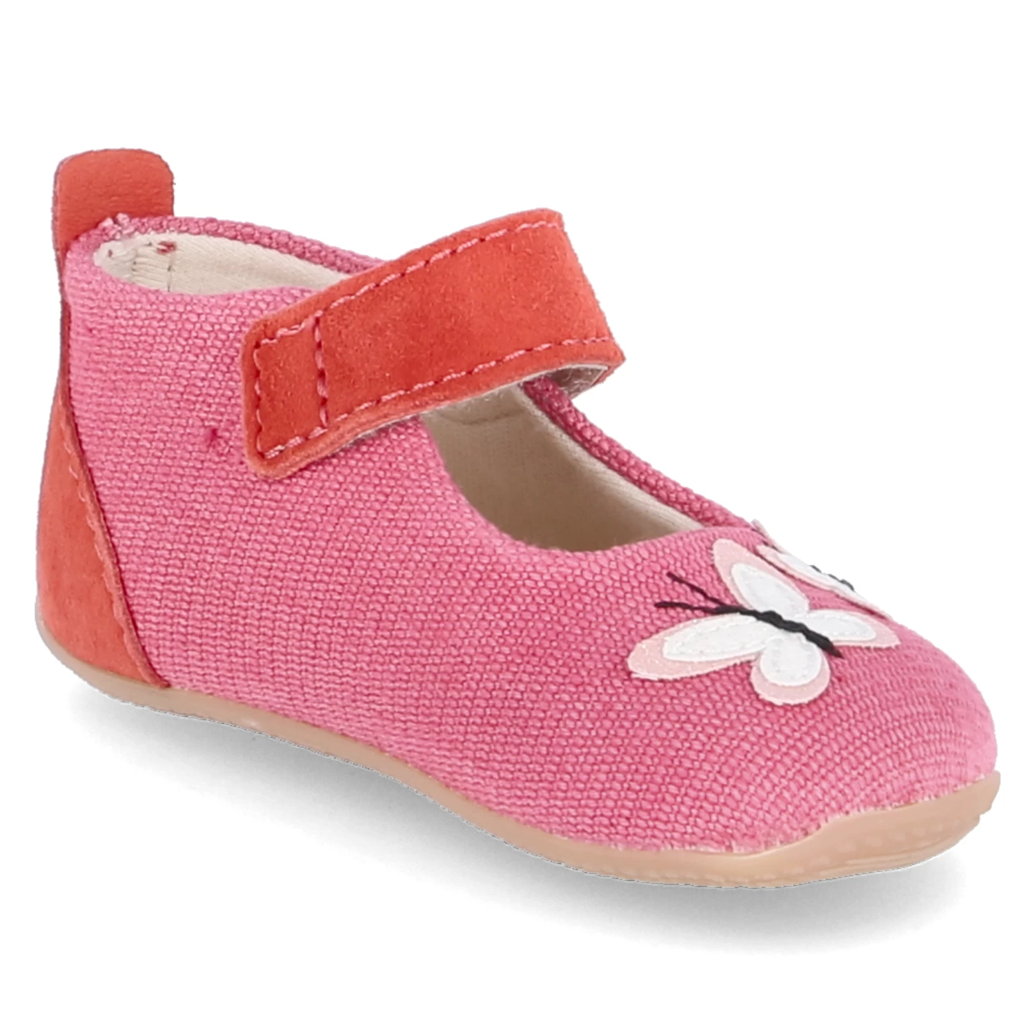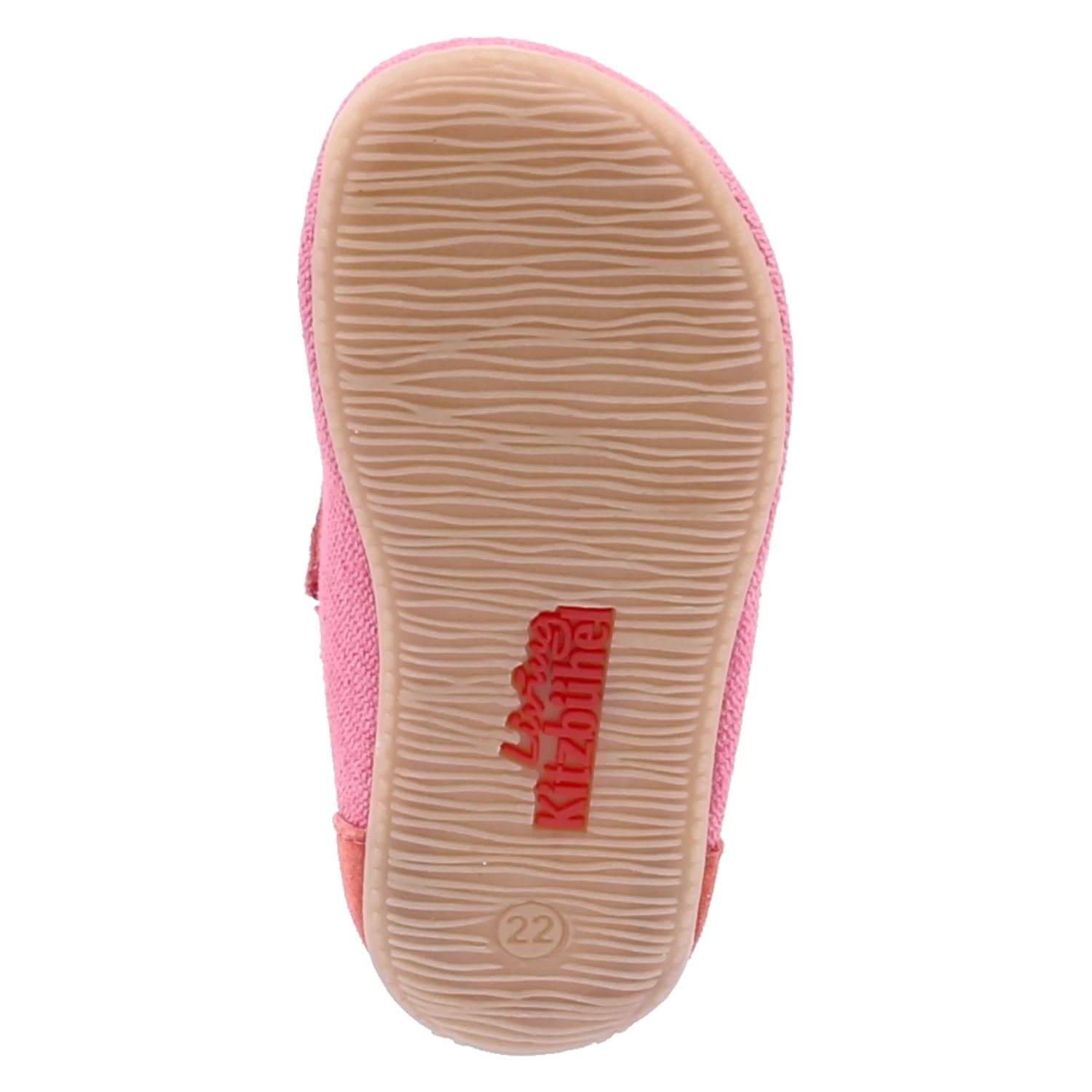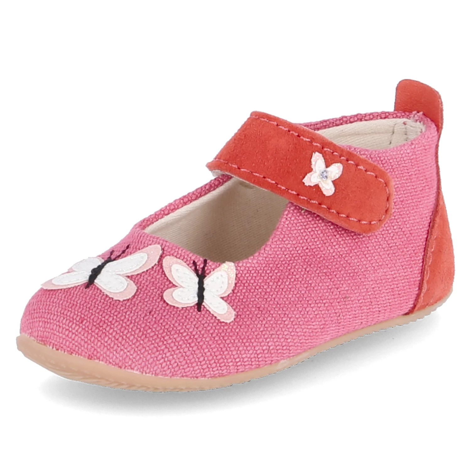 Living Kitzbühel Mädchen Hausschuhe Rosa Leder-Textil-Mix – glitzernde Schmetterlingsmotive – Klettverschluss über dem Spann – verstärkter Fersenbereich – flexible, rutschhemmende Laufsohle – weiche Decksohle